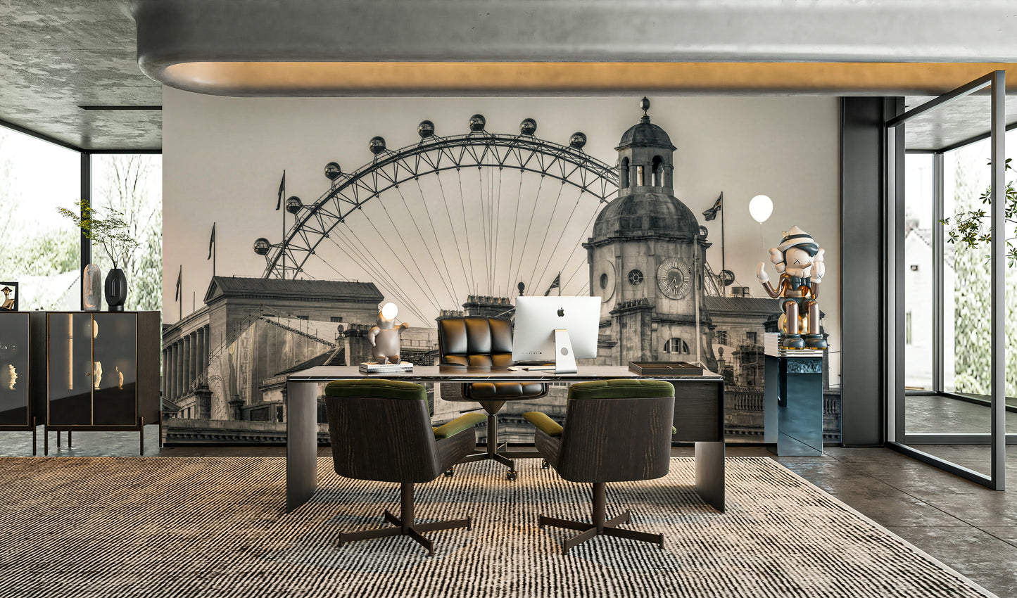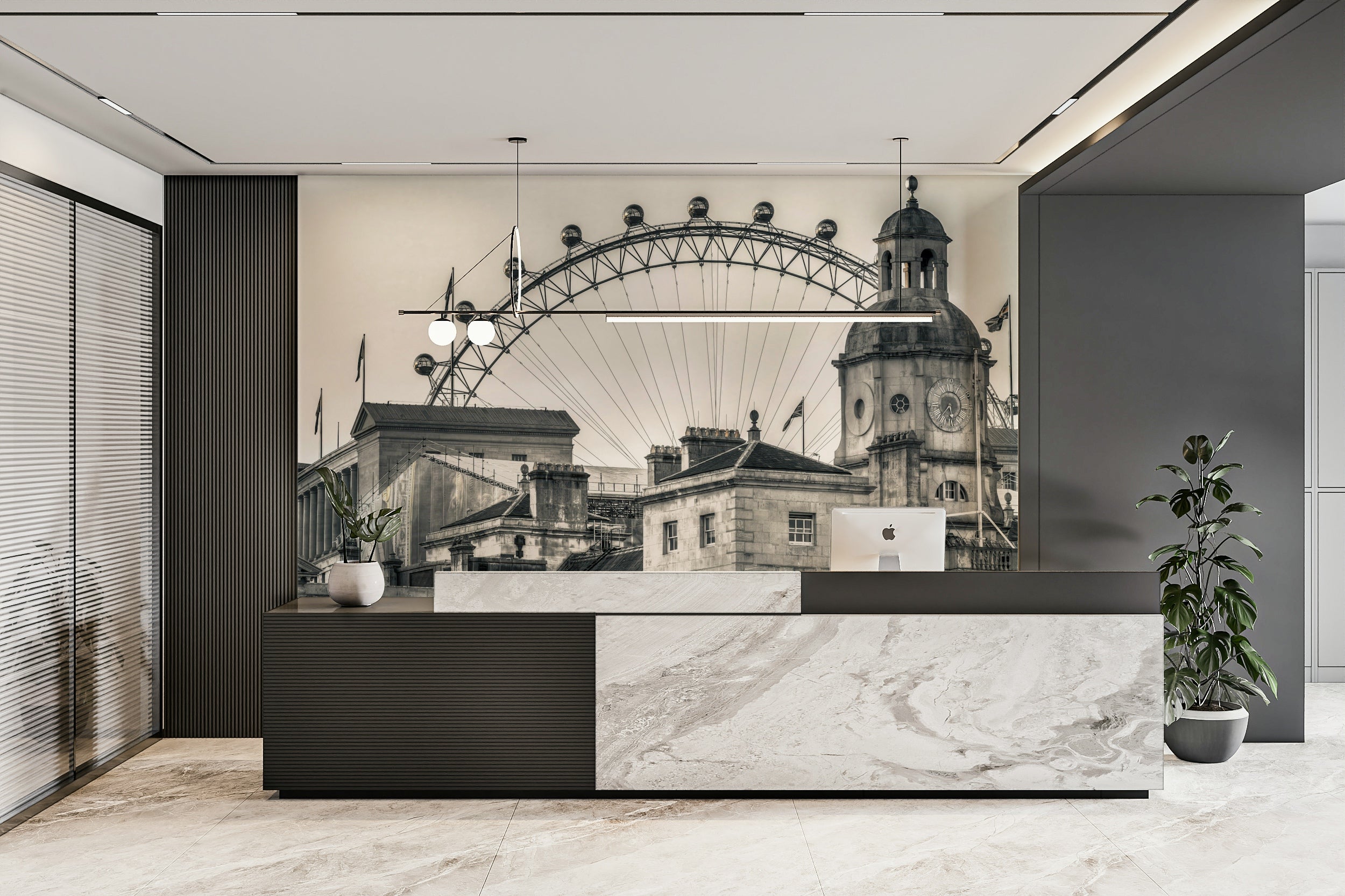 Architectural charm of London with the Ferris wheel captured in this wall mural.