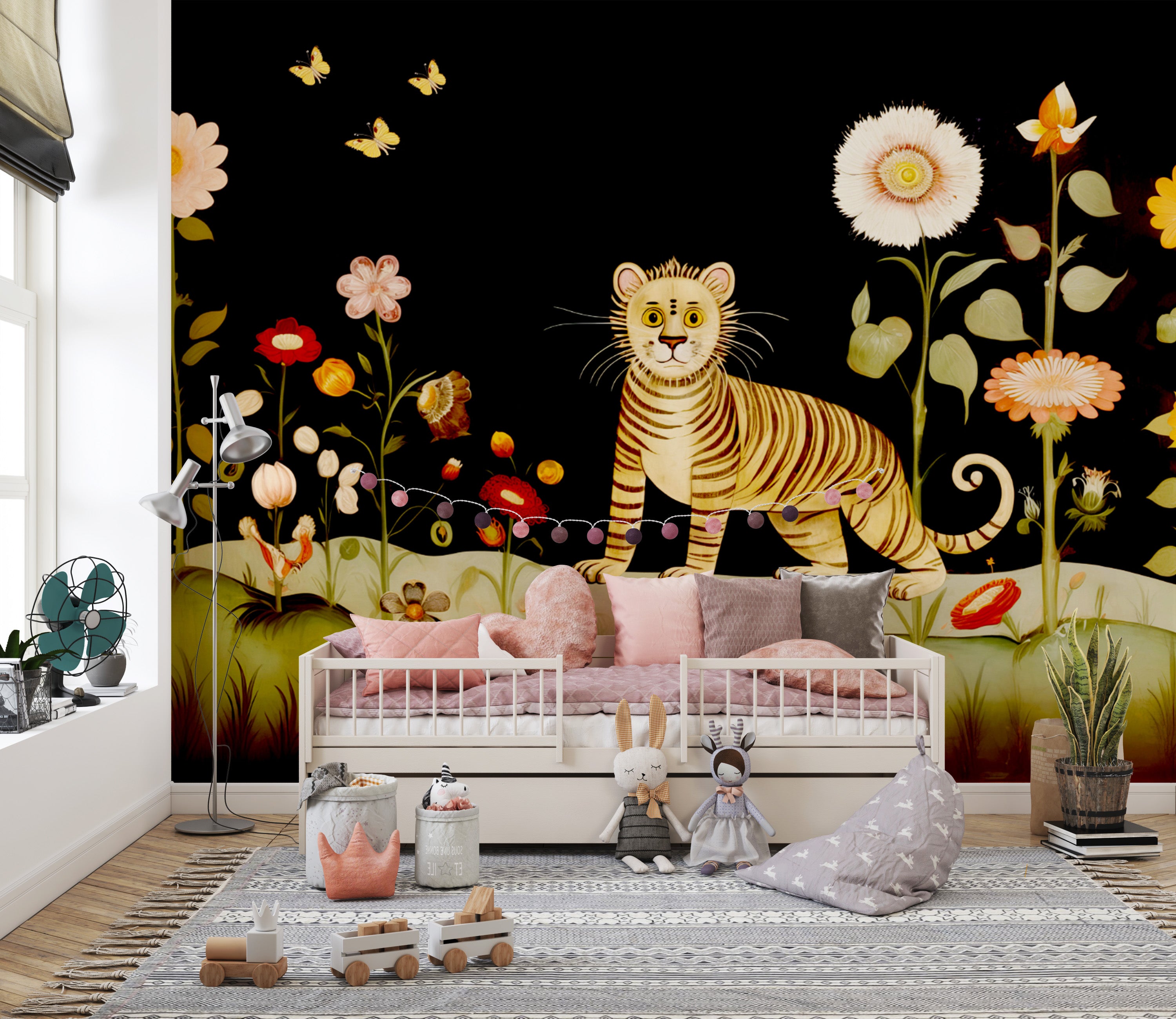 Unique Tibetan flower tiger mural wallpaper for a vibrant, artistic touch.