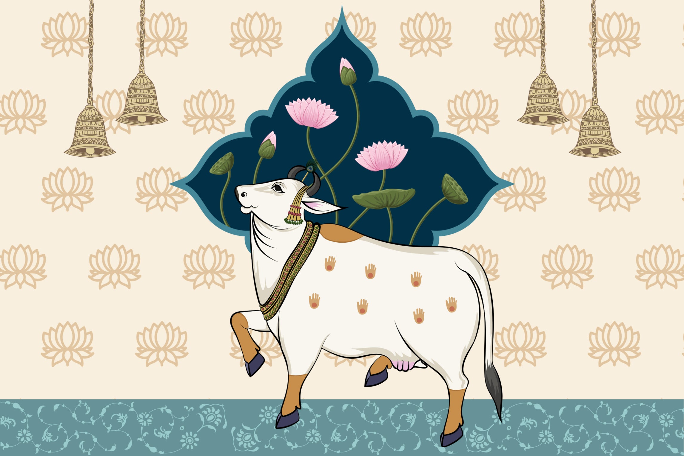 Sacred Cow Wallpaper Mural with spiritual symbols