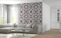 Immerse yourself in the understated elegance of 'Triangles Composition Burgundy,' a wallpaper that blends geometric precision with a touch of rustic charm. This design features a captivating arrangement of triangles rendered in a rich, inviting burgundy hue against a textured, off-white backdrop reminiscent of natural linen. The composition is balanced and thoughtfully arranged, creating a visually appealing pattern that's both modern and timeless. Accompanying each triangle are carefully placed lines and dashes of varying lengths, adding a dynamic and rhythmic feel to the overall design. The subtle variations in the burgundy tone lend depth and character, making this wallpaper a sophisticated choice for any space. 'Triangles Composition Burgundy' offers a subtle statement, perfect for adding a touch of warmth and geometric intrigue to your walls.