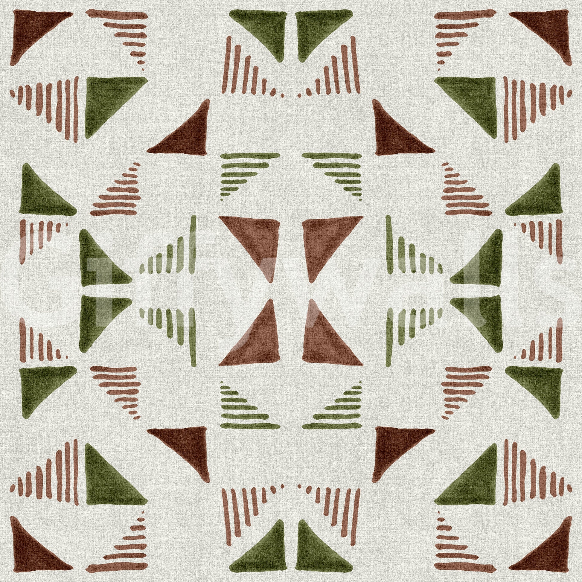 Immerse yourself in the subtle yet captivating world of 'Triangles Composition Forest'. This wallpaper presents a stylized abstraction of nature, employing a mesmerizing geometric arrangement of triangles in earthy tones of brown and olive green. The composition evokes a sense of dense foliage and the play of light and shadow within a forest, rendered with a modern, minimalist twist. Subtle linear details accompany the triangles, enhancing the depth and visual interest of the design, mimicking patterns within nature. The textural background adds a tangible, organic feel, making it feel as though the design is pressed upon canvas. This wallpaper offers a sophisticated and calming aesthetic, ideal for creating a tranquil and stylish atmosphere in any space. Bring the serenity of the forest indoors with this unique geometric design.