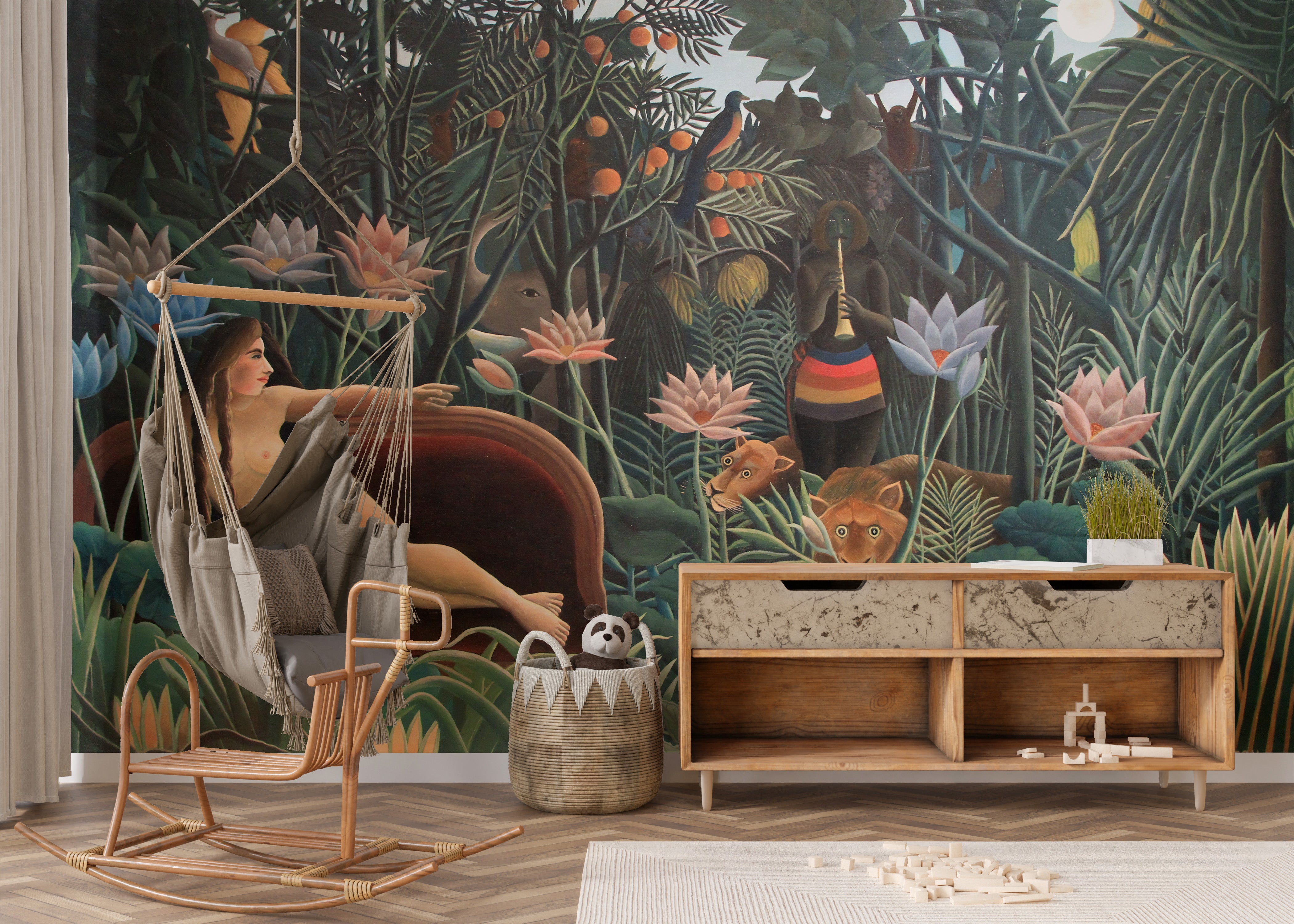 Immerse yourself in the mystique of indigenous cultures with our Tribal Forest Wallpaper Mural. This amazing nude girl wall art merges the ancient with the modern, bringing a piece of the jungle tribe's essence right into your living space. The 'The Tribe' mural is a celebration of color and design, meticulously crafted to transform any room into an ultimate feature wall.