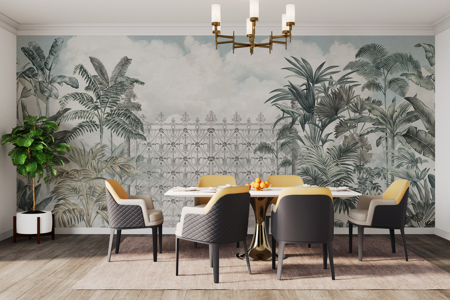 Exotic garden gate mural decor
