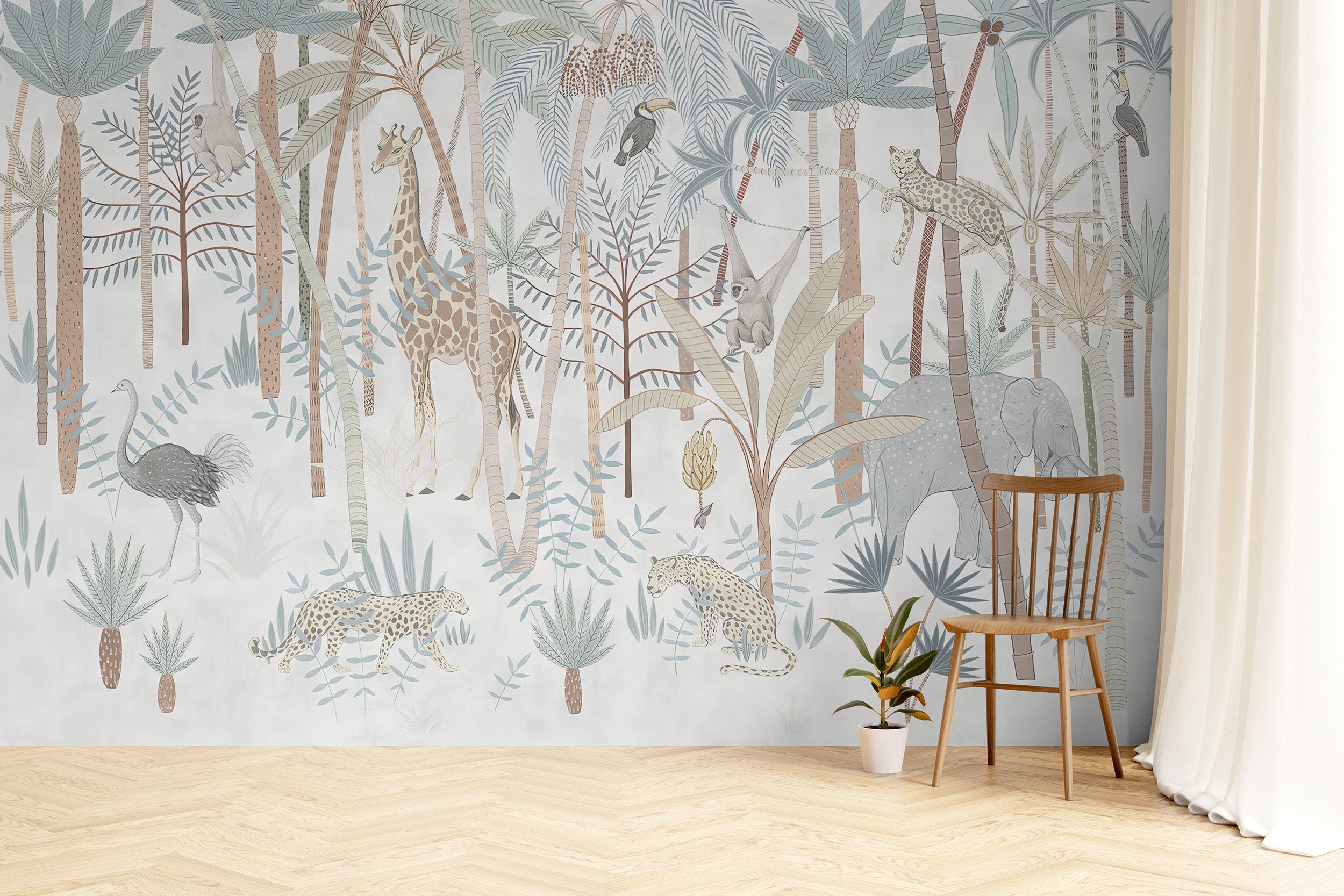 Exotic animals wallpaper mural for nursery