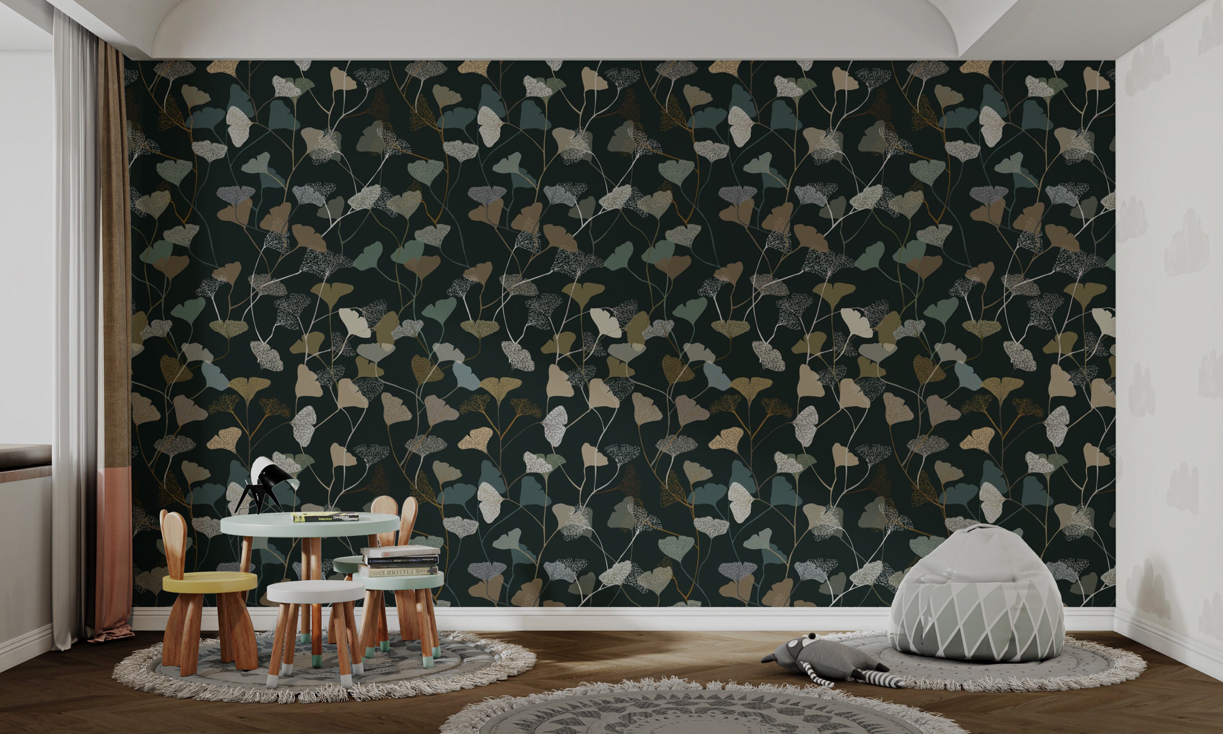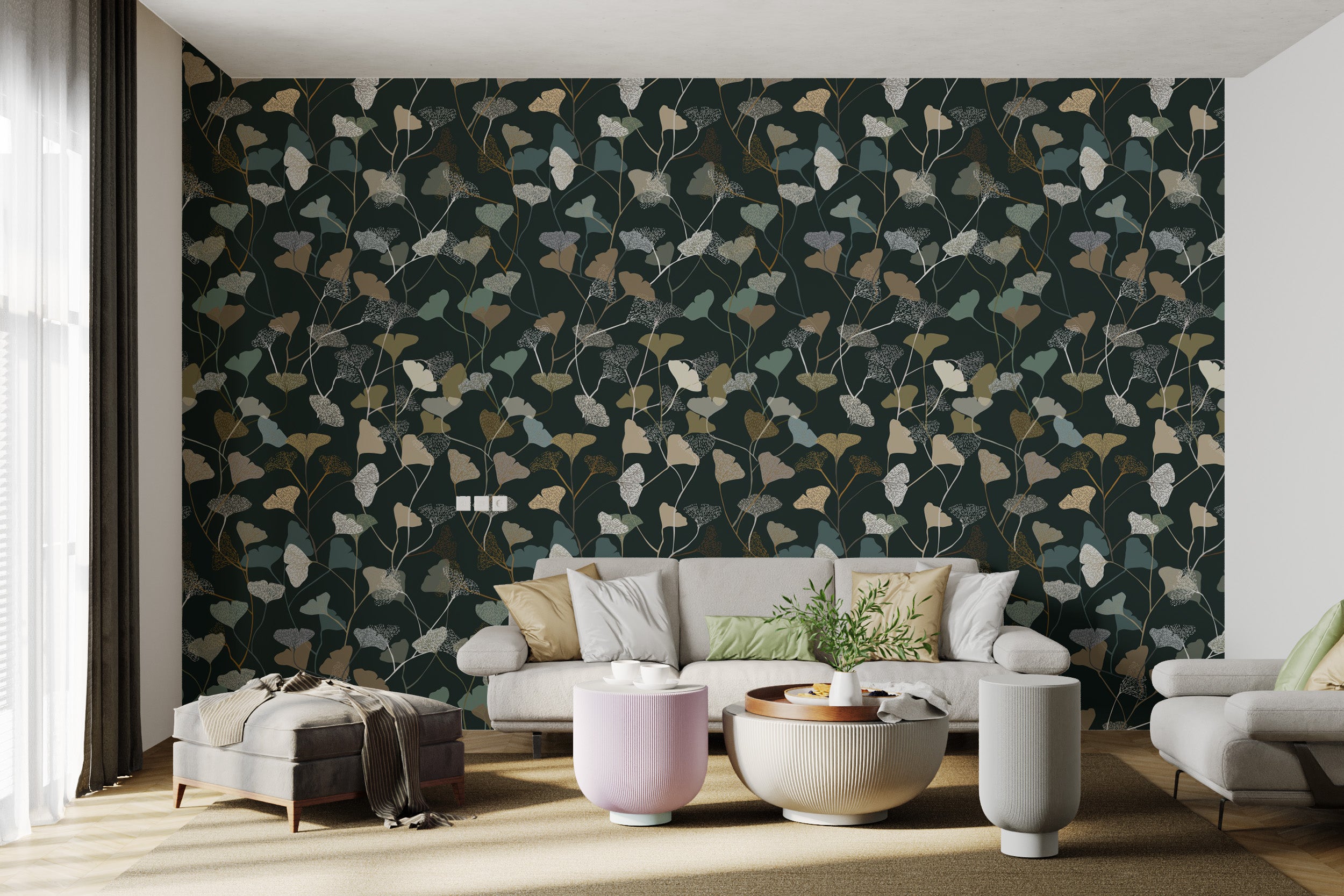 Add a whisper of nature’s harmony to your dining area with this Twilight Ginkgo Symphony Wallpaper. A dusky backdrop comes alive with a pattern of delicate ginkgo leaves, interwoven in a tapestry that speaks of timeless grace. Imagine the soft rustle of leaves with every breeze as this wallpaper sets a serene backdrop for your family meals and dinner parties. With a nod to the artful asymmetry found in nature, each ginkgo leaf flutters in an array of muted golds, silvers, and greens, providing a subtle yet captivating array for your dining room walls. Embrace the fusion of natural beauty and artistic expression with this dining room wallpaper, creating a space where memories are made and moments are cherished.