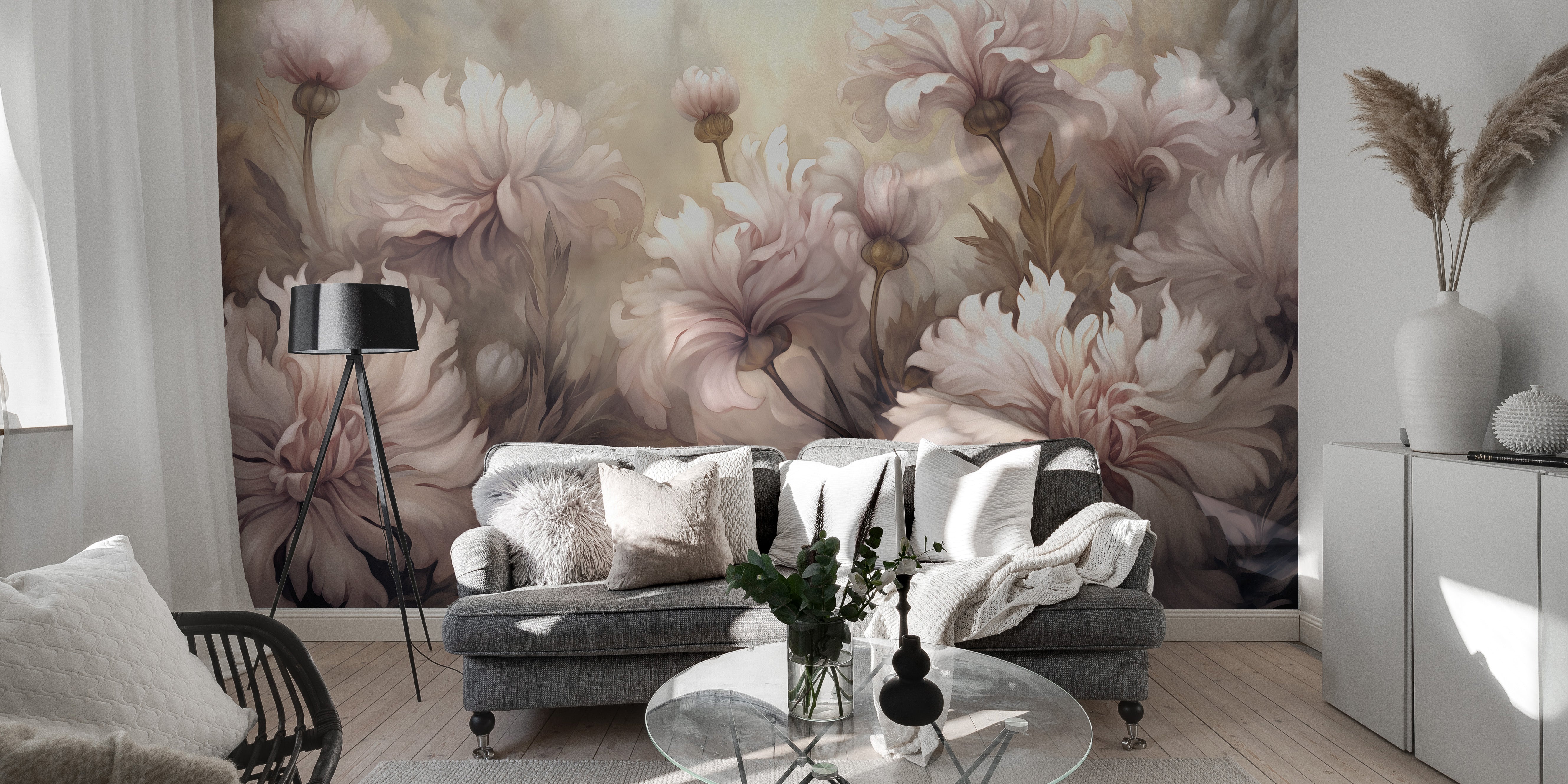 Underwater pink flowers mural wallpaper for a soft and dreamy room upgrade.