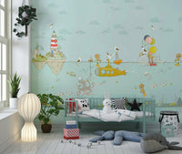 Dive into a world of playful charm with this captivating wallpaper for walls. It features a lighthearted underwater scene with adorable bears, a cheerful yellow submarine, and whimsical sea creatures. Gentle pastel tones and hand-drawn details create a soothing atmosphere. Perfect for nurseries, kids' rooms, or playrooms, this design adds a touch of imagination. The design complements interiors with its sweet characters and calm palette.