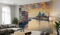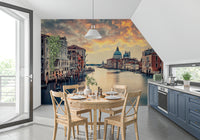 Transform your living space with this breathtaking image of Venice at twilight. The wallpaper for walls captures the iconic canals and historic architecture bathed in the warm hues of a setting sun. The design features detailed buildings and a stunning sky reflected in the water, creating an atmosphere of romantic tranquility. The neutral color palette and soft light make it an ideal choice for bedrooms, living rooms, and dining rooms. It brings a touch of Italian elegance, enhancing any interior décor with its timeless beauty and charm.