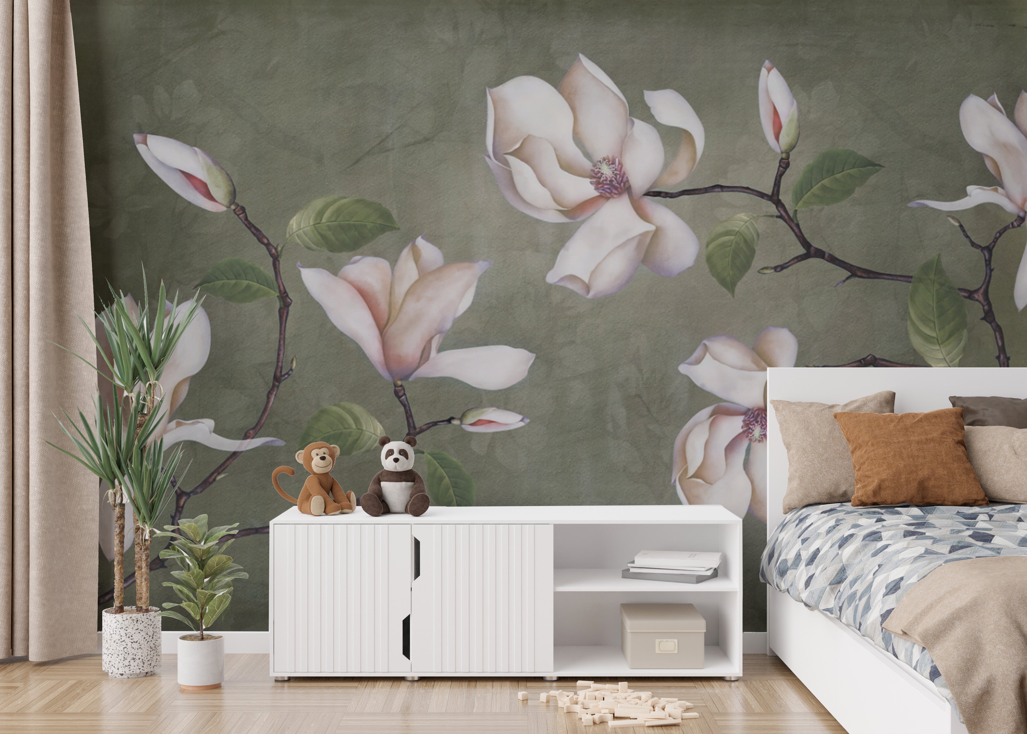Soft vintage blossom mural for a delicate, romantic ambiance.