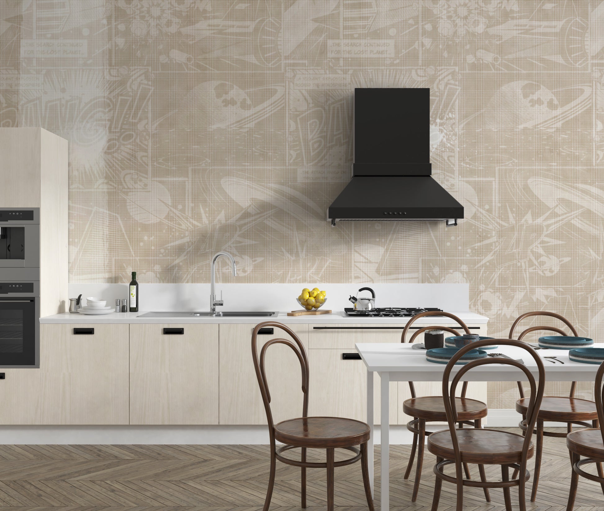 Bold sci-fi comic strip wallpaper print