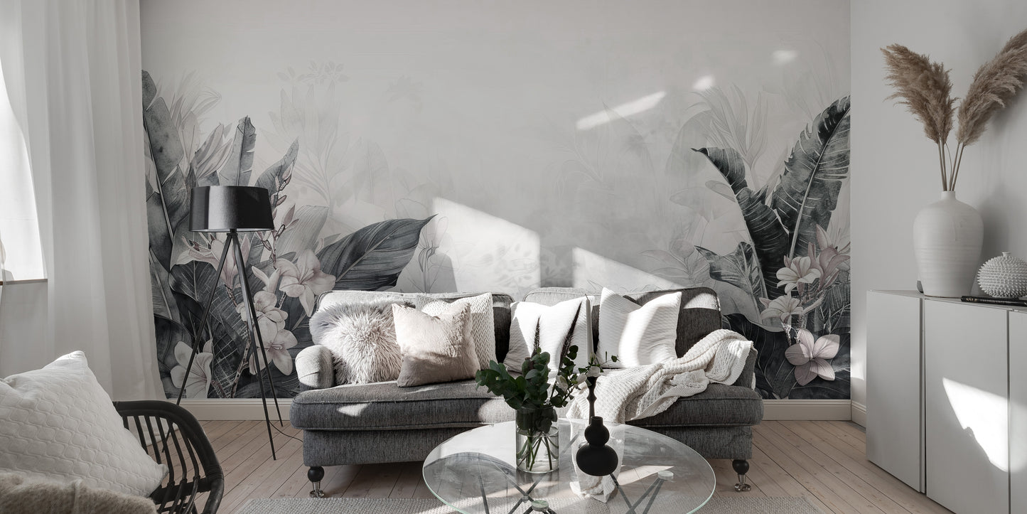 Elegant tropical leaves wall mural tones