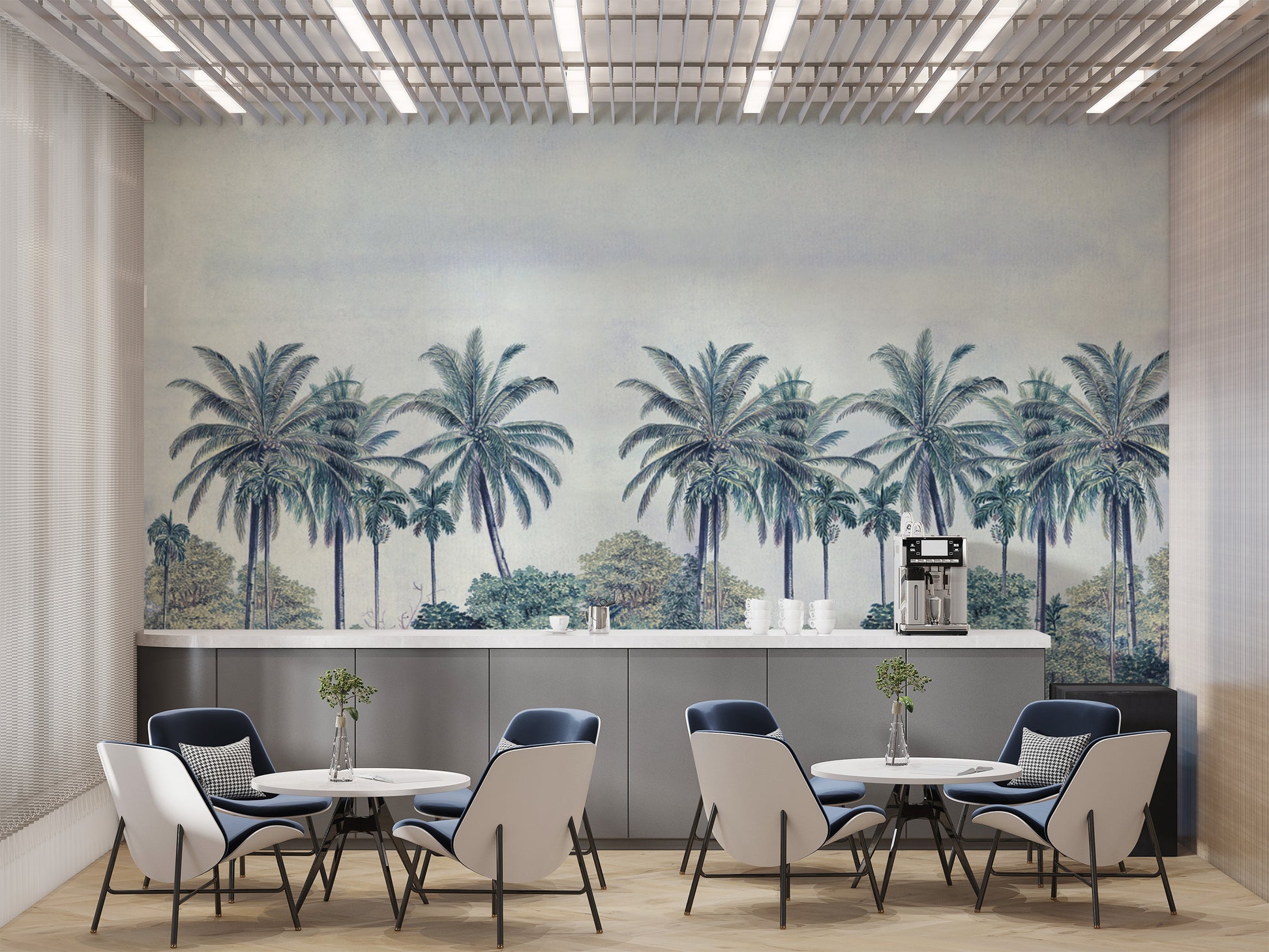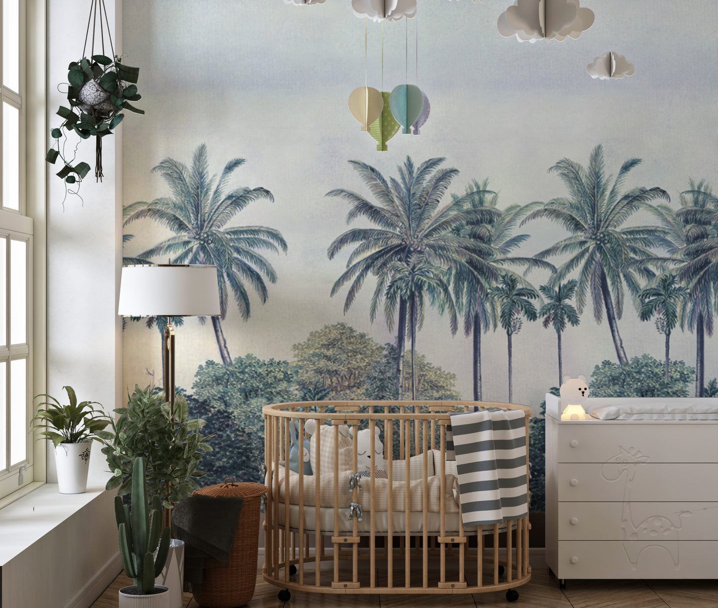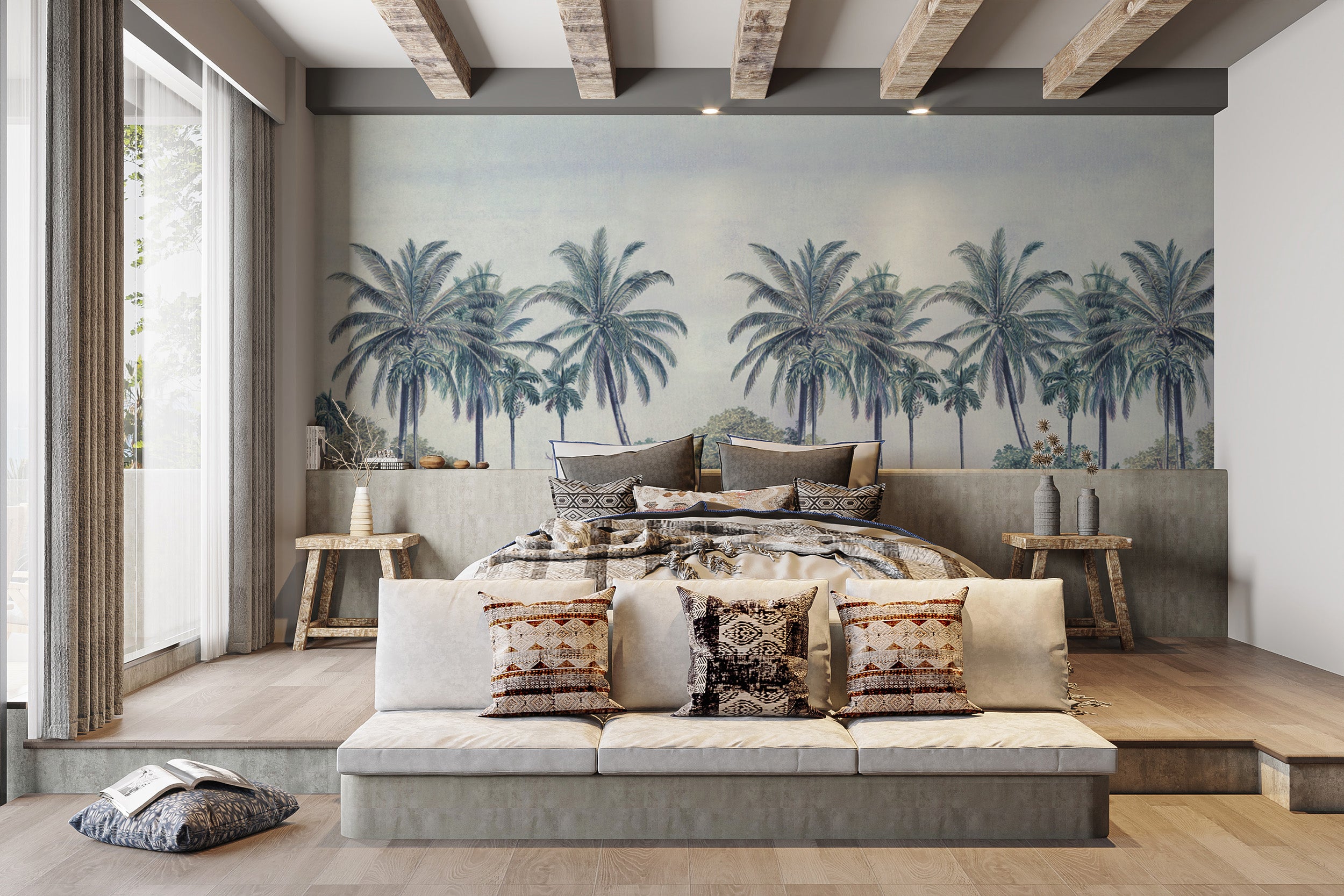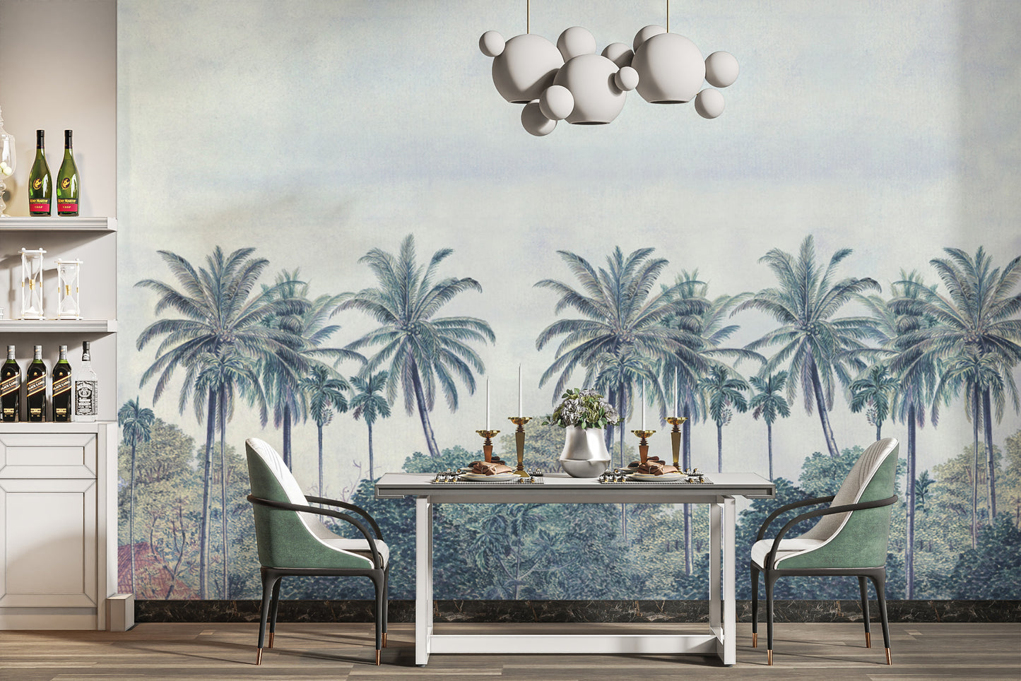 Rejuvenate your room with the ancient grace of vintage tropical palm tree wallpaper. The spectacular botanical jungle mural, rich with detailed illustrations of lush palm forest imagery, creates a tropical paradise in any space. The hand-painted botanical landscape mixes soft colors with a vintage style, ideal for nature-themed décor rooms. Perfect for use in living areas such as living rooms, bedrooms, and offices, this antique palm tree engraving print lends itself to sophistication and calm. Add charm to your decor with this historic forest scene wallpaper, an old-time nature wallpaper that can be used to add to a contemporary and traditional space. This tropical greenery mural creates a cool, refreshing, and exotic feeling.