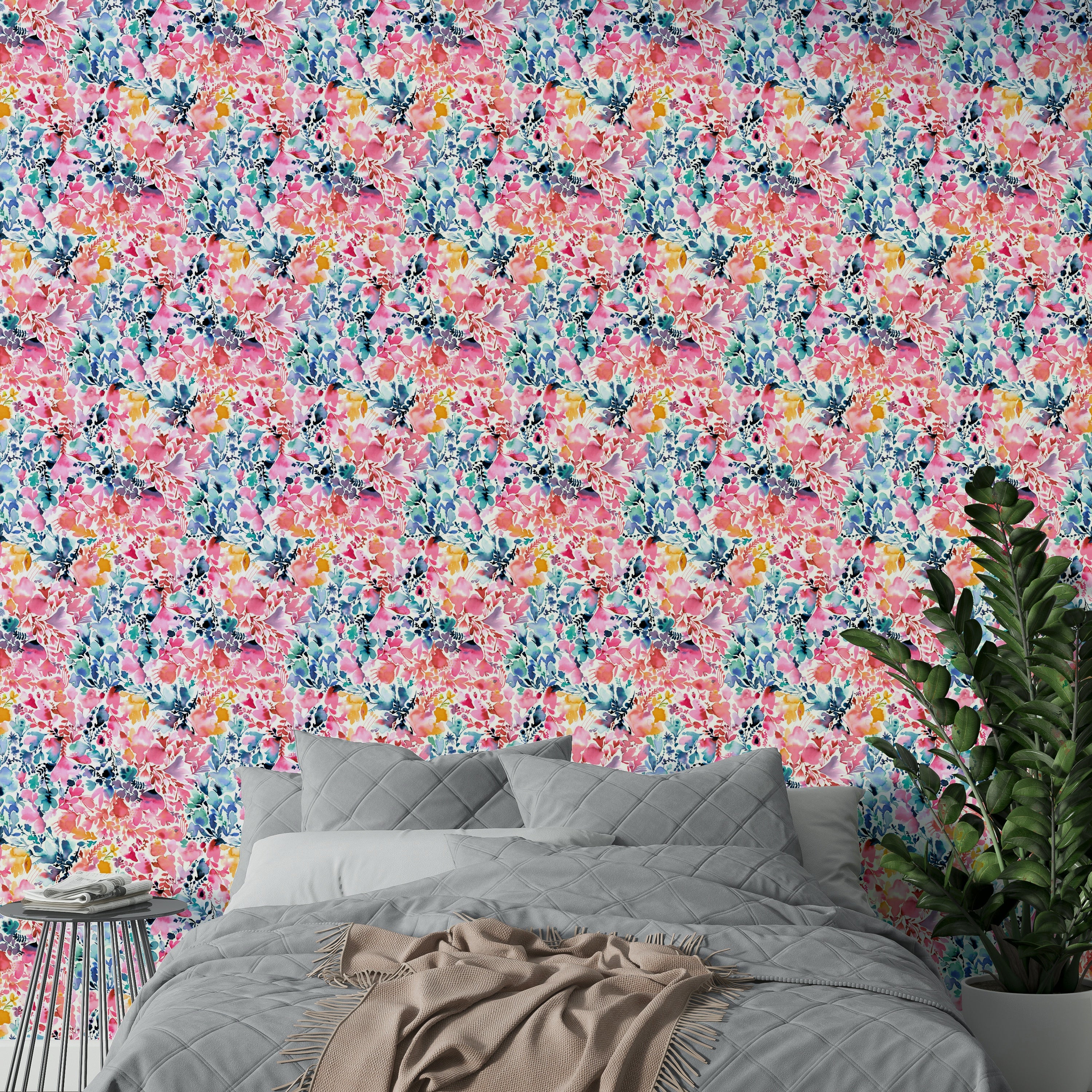 Watercolor Artistic Flowers Multicolored Wallpaper⁠