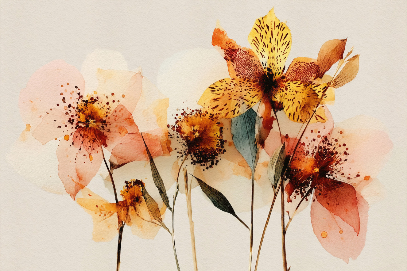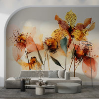 Transform your walls with this elegant floral design. Soft watercolor brushstrokes create a tranquil atmosphere. The delicate blossoms in peach, yellow, and beige offer a sophisticated touch. Ideal for bedrooms, living rooms, or dining areas, this wallpaper for walls brings a serene, artistic flair to any space. The design complements modern and traditional interiors alike, adding a subtle yet captivating visual interest. It brightens rooms with a touch of nature's beauty. Add a sophisticated, artistic element that enhances your home’s interior.