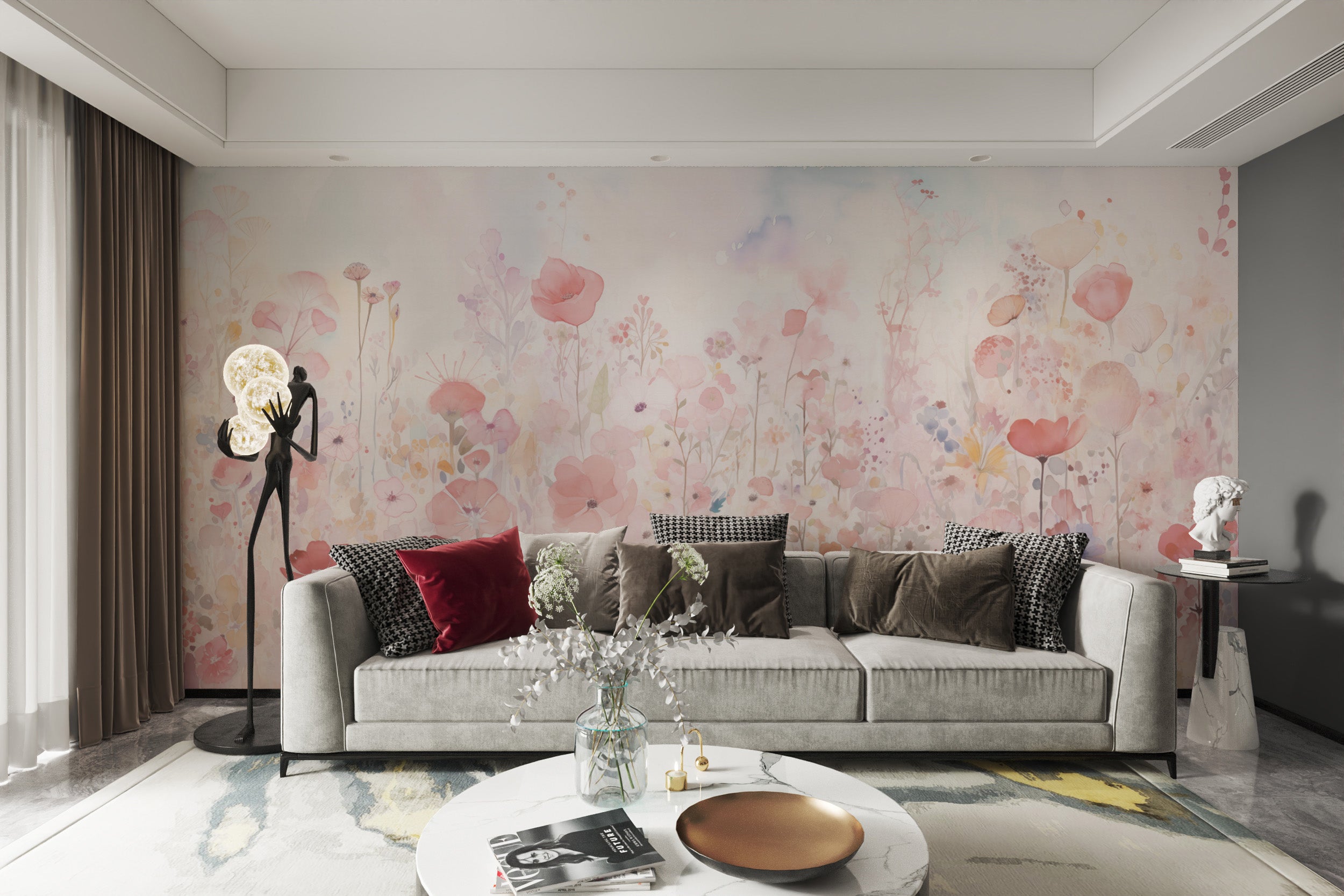 Transform your space with gentle watercolor happy flowers pastel wallpaper.