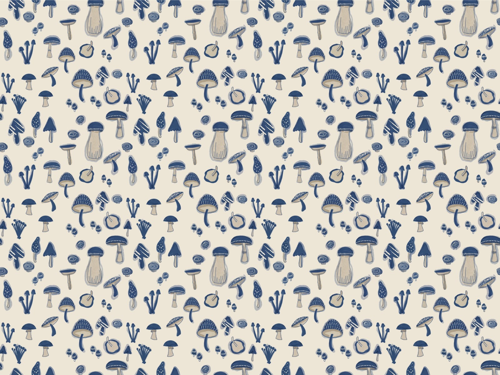 Soft Watercolor Mushrooms Navy Blue Wallpaper