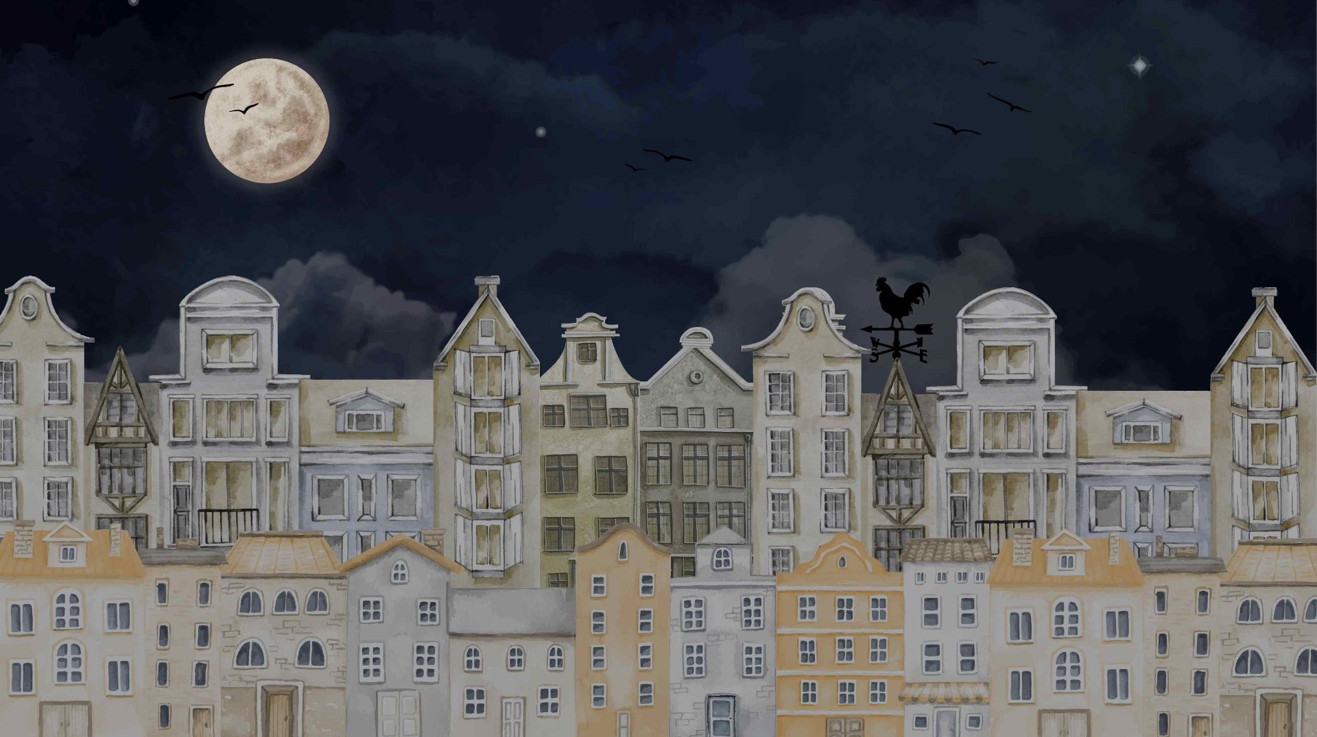 Dreamy urban charm with Watercolor Night House Wallpaper