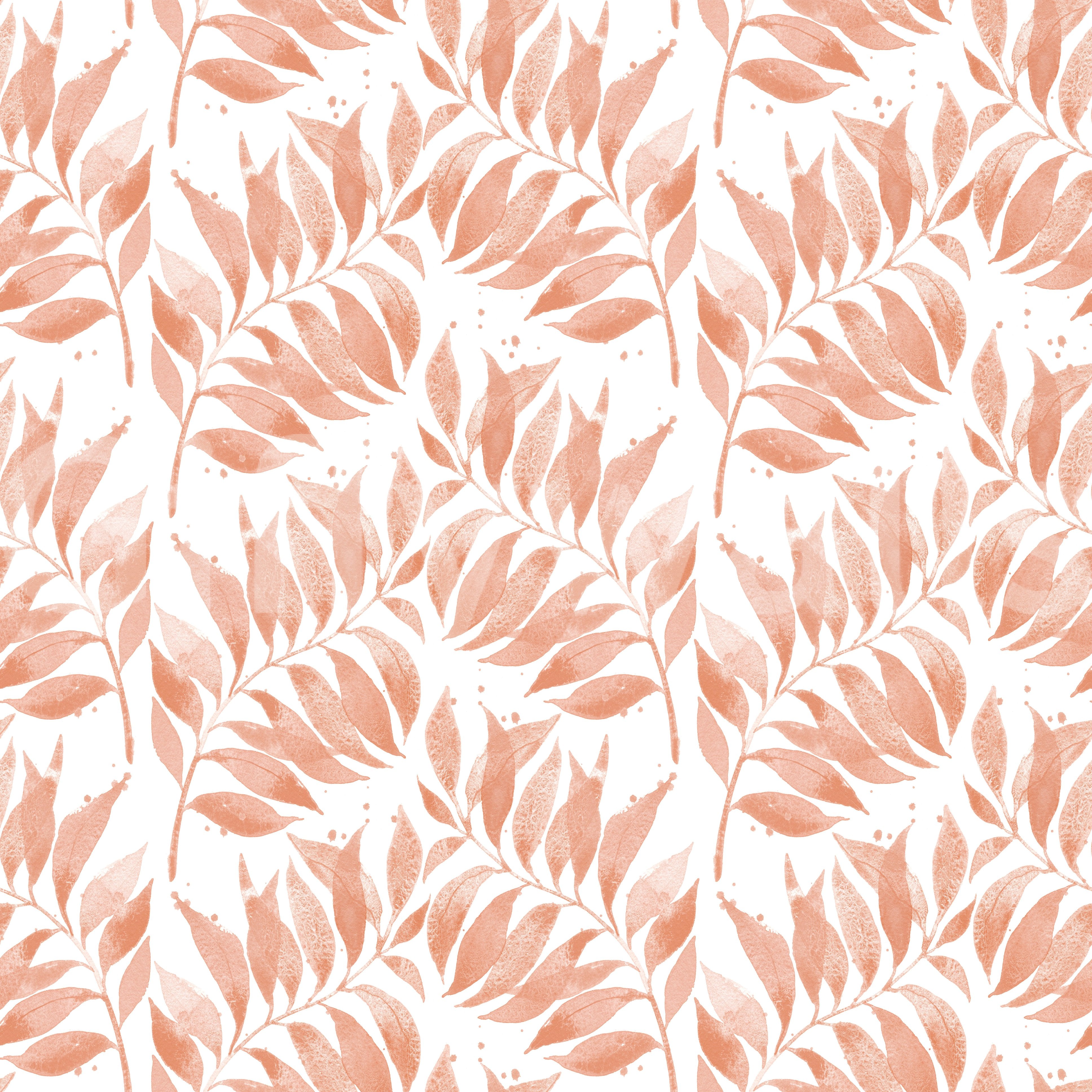 Embrace the serene beauty of this Watercolor Palm Leaf Terracotta wallpaper. Delicate, terracotta-hued palm fronds, rendered in a soft watercolor style, create a calming and sophisticated pattern. Subtle splatters of paint add a touch of artistic spontaneity against the crisp white background. This design evokes a sense of tranquil warmth, perfect for adding a touch of understated elegance to any digital device. The repeating motif ensures seamless coverage, providing a visually pleasing and harmonious aesthetic. Ideal for those seeking a minimalist yet impactful botanical design.