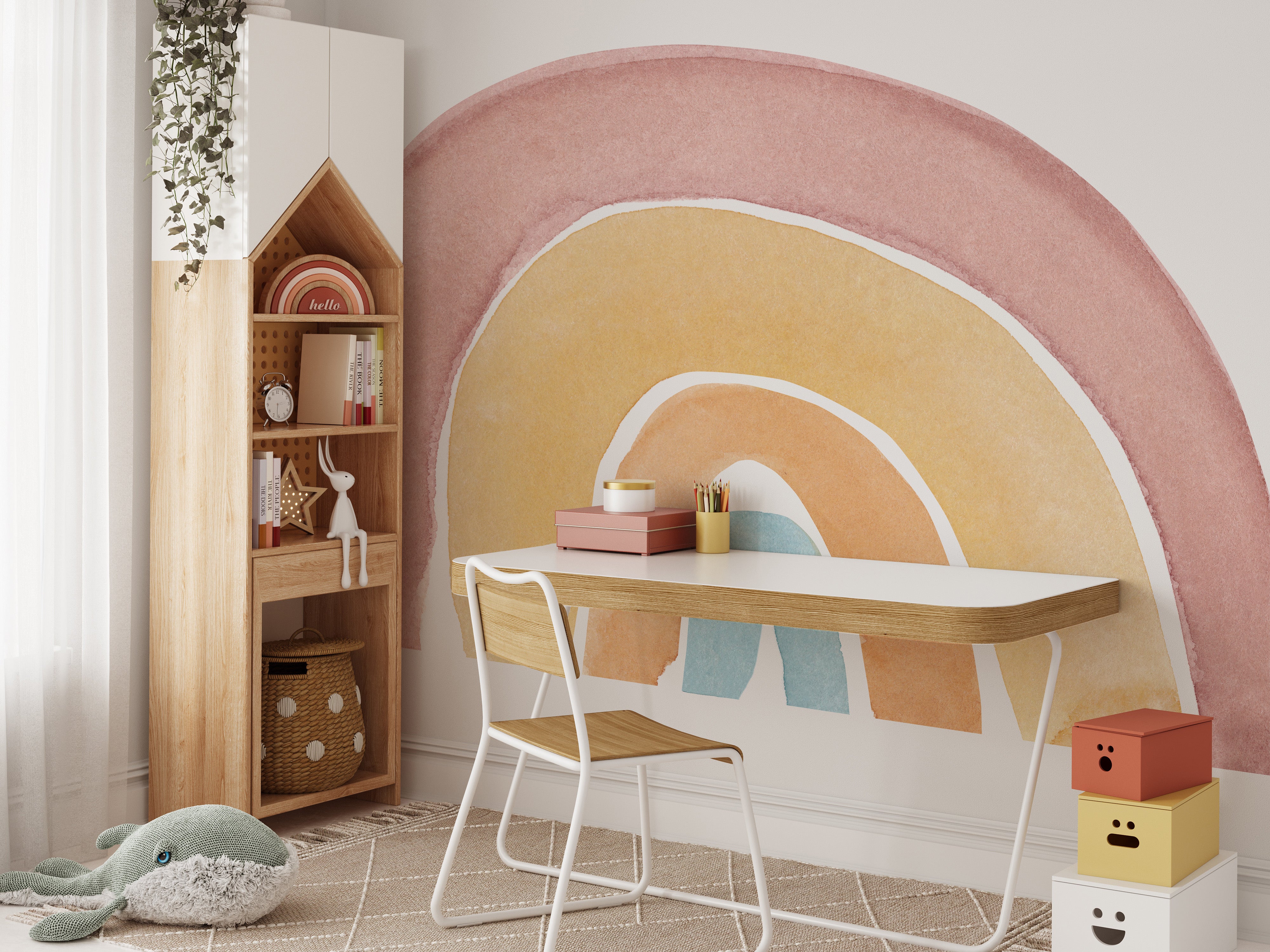 Bring a burst of color and joy into your child's bedroom with our watercolor rainbow colorful wallpaper murals. Designed to capture the essence of childhood imagination, these watercolor wallpaper murals feature a delightful spectrum of rainbow hues, painted in a watercolor style that adds a soft and playful touch. Ideal for nurseries, playrooms, or any kid's bedroom, this rainbow wallpaper creates an environment of creativity and fun.