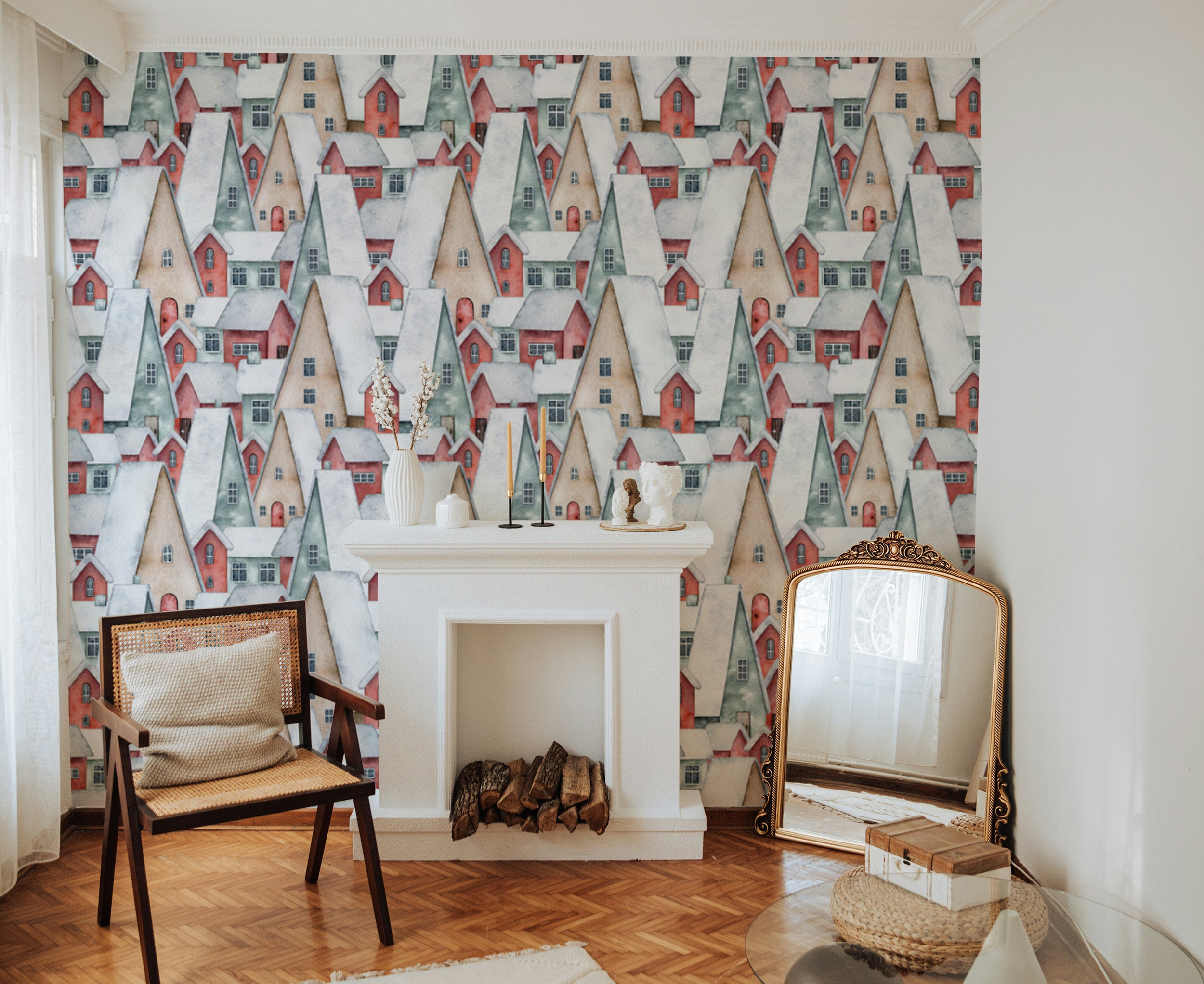 Scandinavian winter houses wallpaper for a warm touch