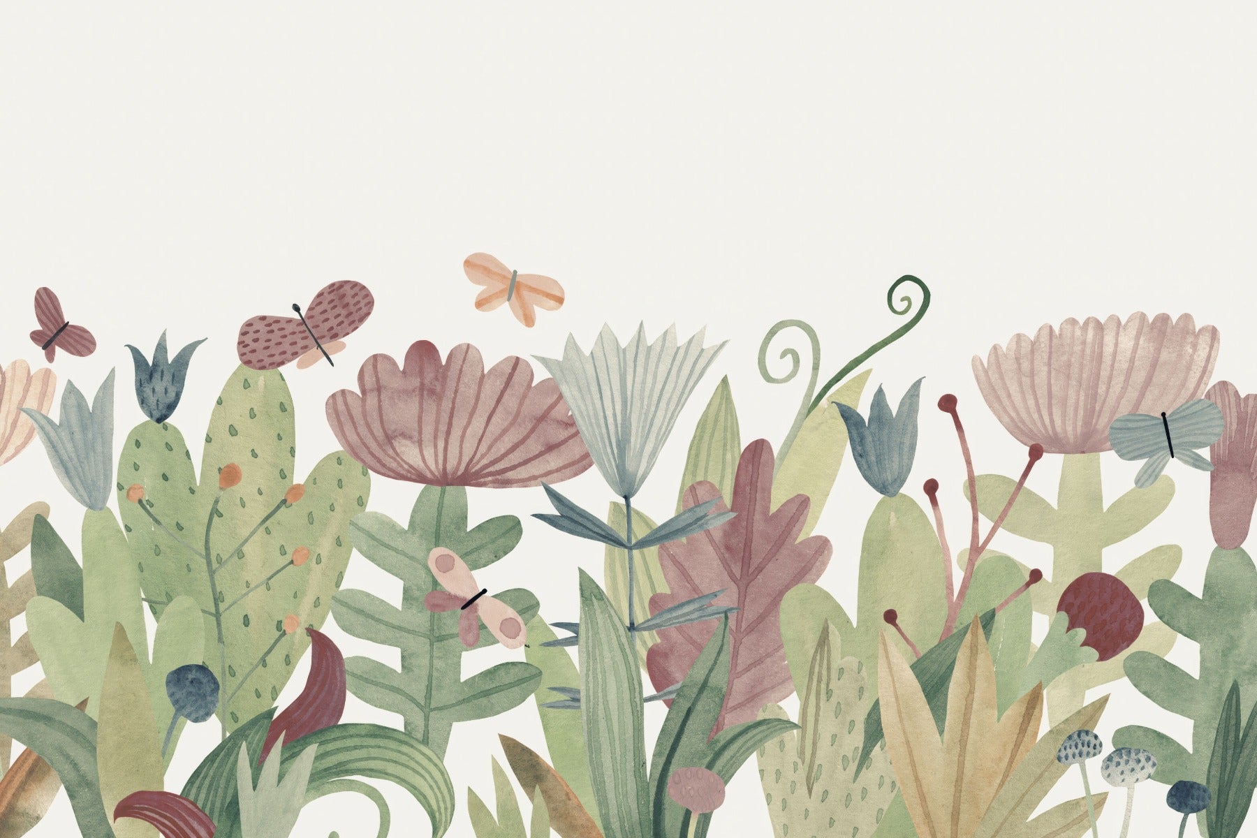 Welcome to an enchanting visual experience where the beauty of wild nature is brought to life on your walls. The watercolor wildflower wall mural offers a serene escape within the comfort of your nursery. Featuring a rich tapestry of flora painted in watercolour, this nursery wallpaper is meticulously crafted to create a nurturing environment for your little one. The lush portrayal of wildflowers provides a backdrop that's not only visually appealing but also stimulates the imagination of young minds. It's here that dreams are cradled, and moments of wonder are nurtured amidst the blooms of nature's own masterpiece.