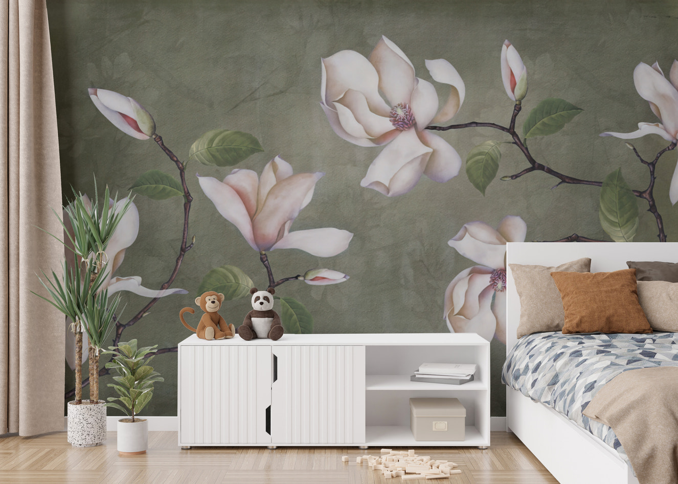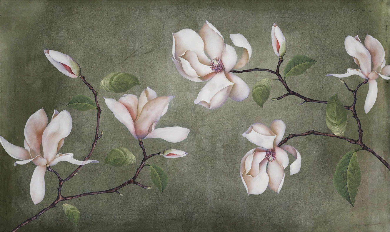 Nature-inspired lotus wallpaper with soft, earthy tones