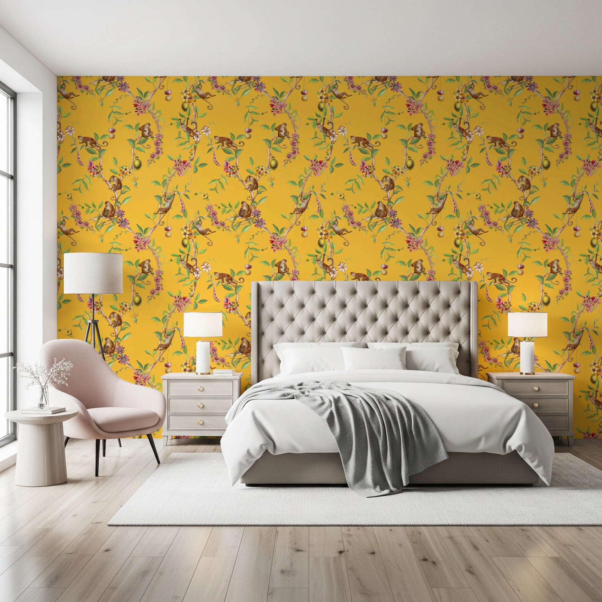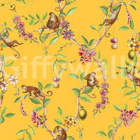 Whimsical Playing Monkeys Family Vintage Exotic Garden yellow Wallpaper⁠