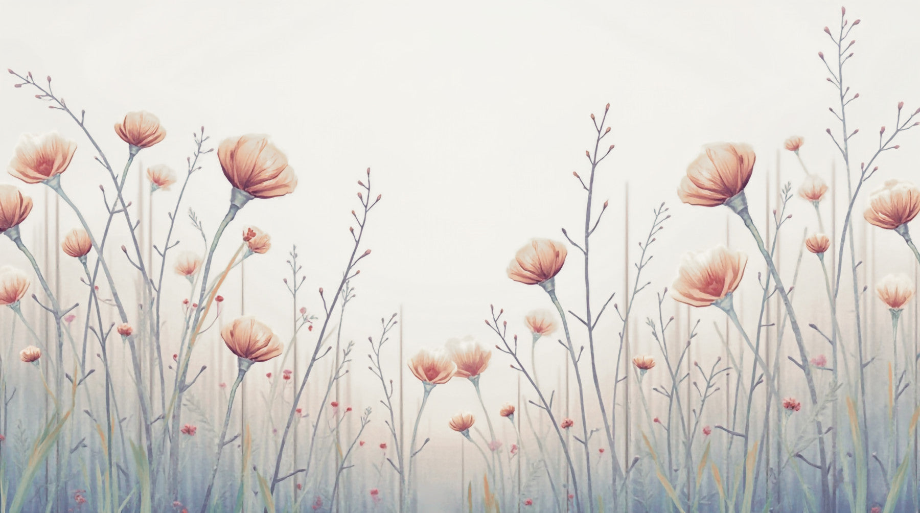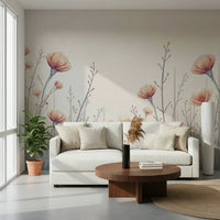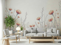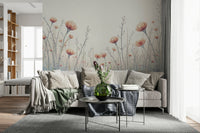 Infuse your home with the understated charm of this floral wallpaper! Featuring graceful blossoms in subtle peach tones, set against a backdrop of muted greens and blues, it exudes a soothing and elegant vibe. This wallpaper for walls brings the beauty of a wildflower meadow indoors, creating a tranquil ambiance. The watercolour-like effect offers a soft, diffused aesthetic, ideal for bedrooms or any space where you desire a calm, relaxing atmosphere. Let this design effortlessly complement your interior, adding a touch of nature's beauty with a contemporary touch.
