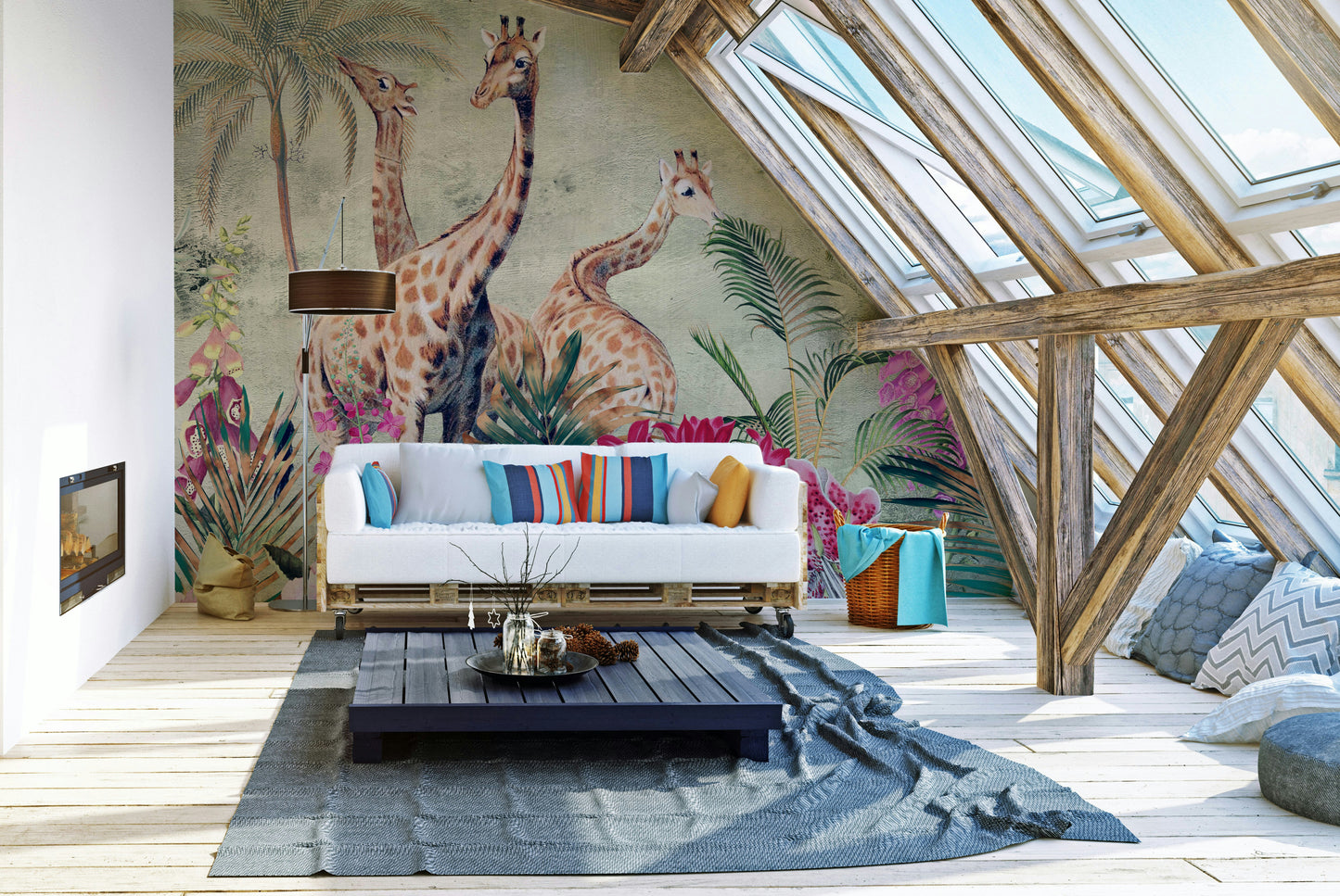 Living room savannah mural