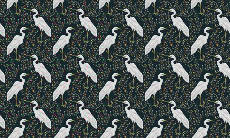 Heron and cranberry plant wallpaper design