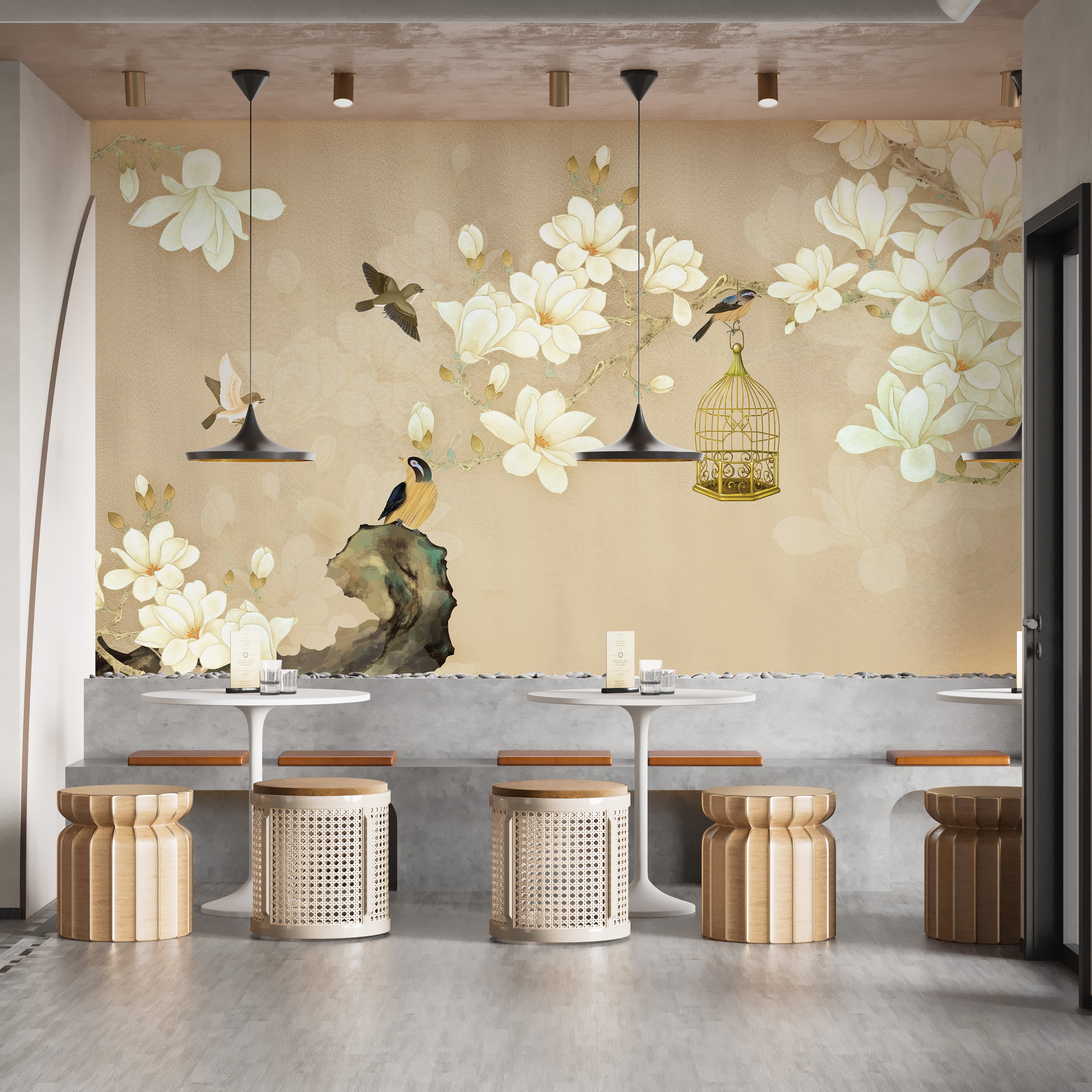 Elevate your interior with the serene beauty of our white magnolia flowers wallpaper mural. This elegant design captures the essence of peace and tranquility, making it perfect for creating a soothing retreat in homes and commercial spaces. The lifelike magnolias add a touch of sophistication and natural beauty to any wall, offering a timeless backdrop for modern and classic decor alike. Its premium material ensures durability and ease of application, appreciated by DIY enthusiasts, interior designers, and professionals in the real estate and architectural fields. Transform living rooms, bedrooms, or offices into serene sanctuaries with this exquisite white flower wallpaper mural.