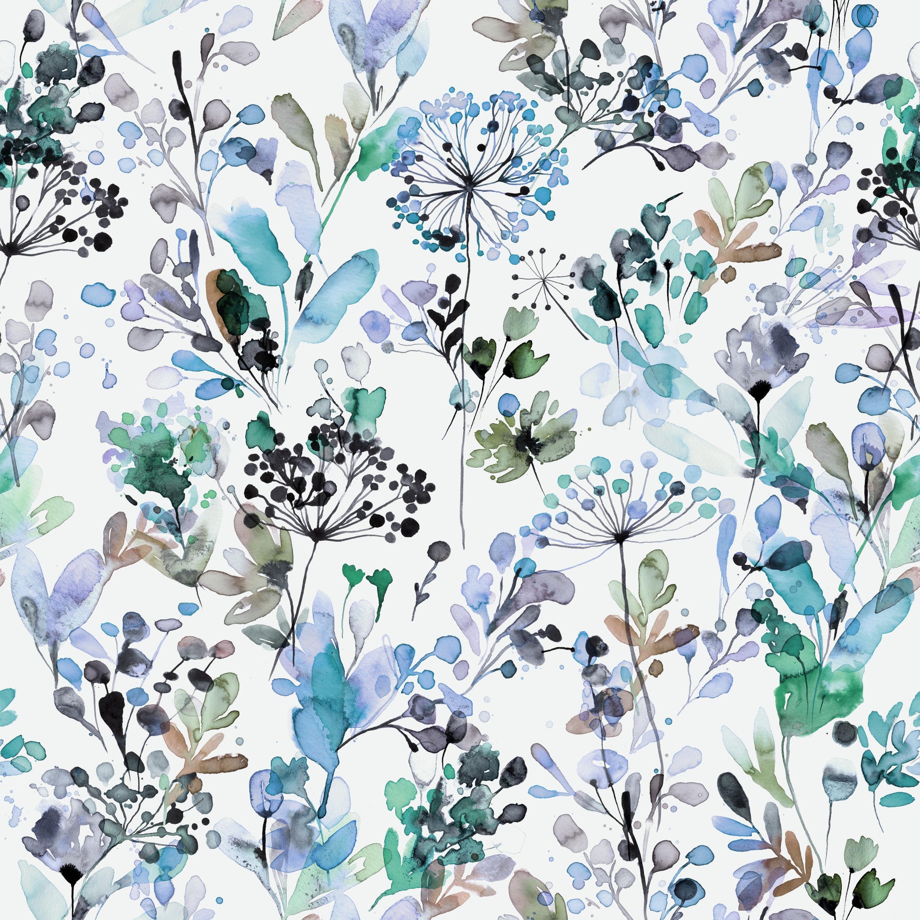 Embrace serenity with "Wild Grasses Blue," a captivating wallpaper featuring an ethereal watercolor landscape. Delicate, skeletal leaves in shades of grey and green dance across a soft, off-white background, creating an illusion of gentle movement. Hints of gold subtly accentuate the organic forms, adding a touch of luxury. This abstract botanical design evokes a calming, meditative mood, perfect for creating a tranquil atmosphere in any space. The intricate vein details of the leaves and the flowing watercolor washes blend seamlessly, offering a sophisticated yet natural aesthetic. This piece brings a sense of peaceful wildness to your digital desktop.