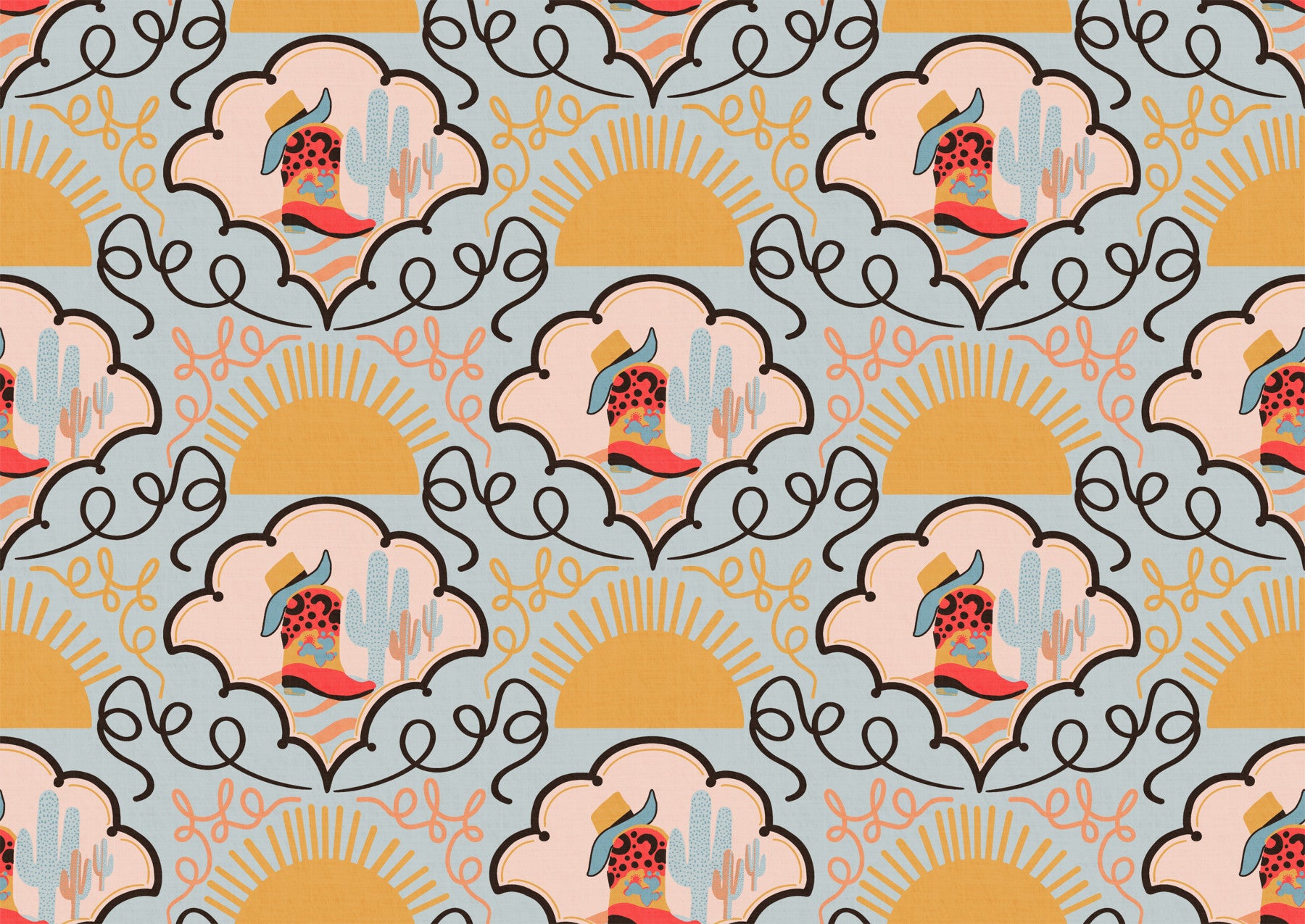Add a playful twist to Western charm with Wild West Whimsy, a vibrant design featuring bright red cowboy boots, golden sunbursts, and hand-drawn cacti. Set against a soft, textured backdrop with swirling linework, this wallpaper brings movement and joy to any space. The pastel color palette-featuring soft reds, pinks, and sandy tones, gives it a modern, lighthearted feel. Perfect for kids’ bedrooms, creative playrooms, or even a quirky home office, this design is for dreamers, little cowpokes, and anyone looking to bring a dose of yeehaw into their decor. Ideal for Western-themed interiors, cowboy nurseries, or eclectic, folk-art-inspired homes.
