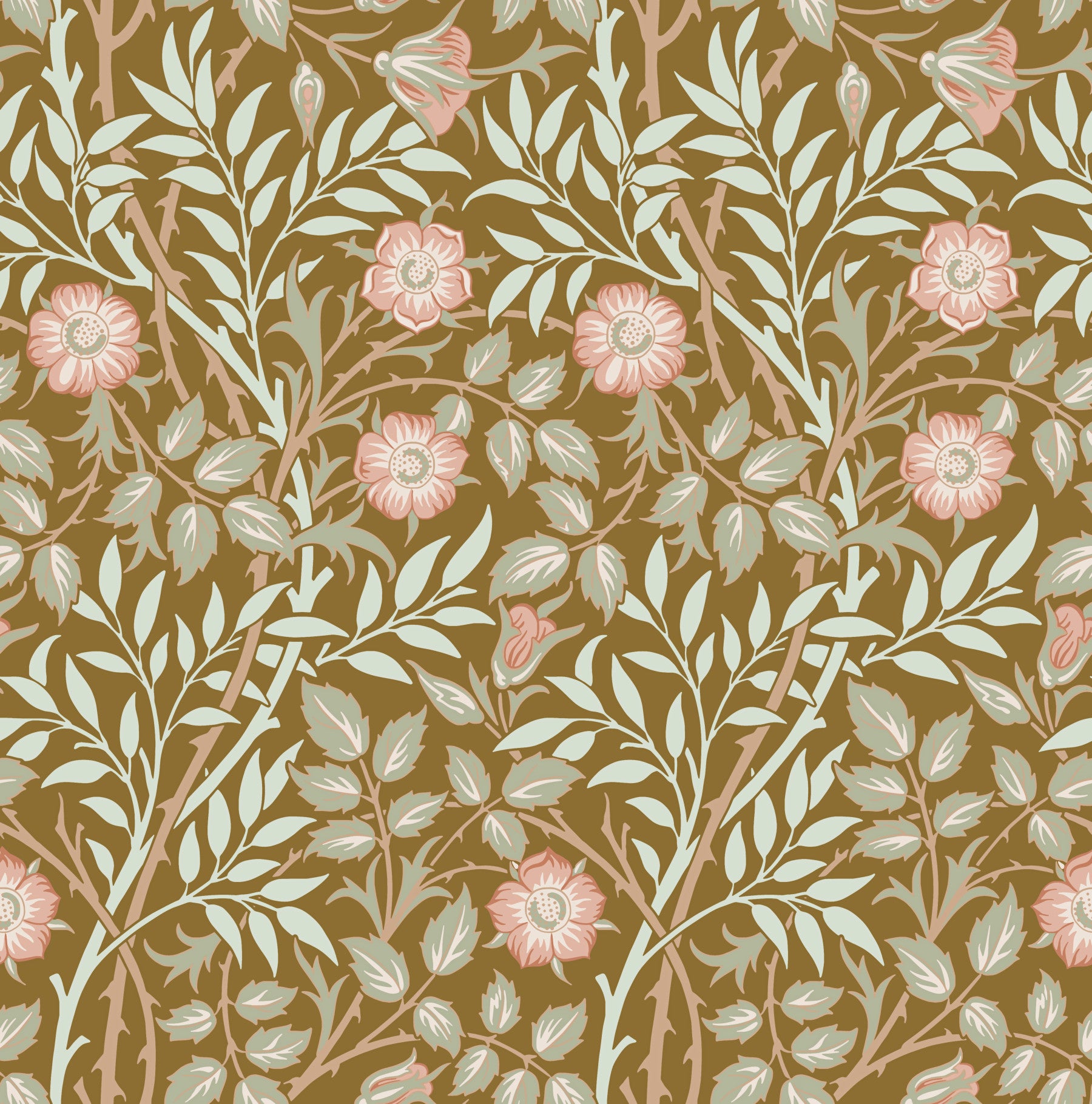 William Morris Sweet Briar Gold Pink Wallpaper⁠