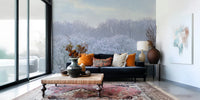 Bring a breath of fresh air into your home. This wallpaper for walls showcases a forest shrouded in mist. A light dusting of snow glistens on the trees. Soft, neutral hues create a relaxing vibe, perfect for bedrooms, living areas, or a calm home office. The delicate scene adds a touch of organic beauty. This wallpaper complements minimalist décor or natural color schemes. The muted tones and subtle texture enhance rooms creating a cozy and inviting atmosphere.