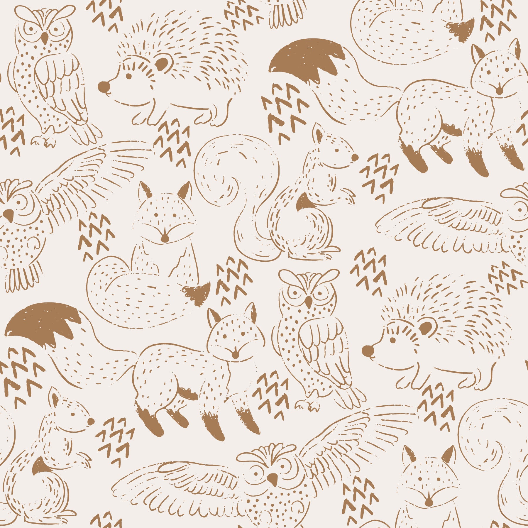 Soft brown wallpaper with illustrated forest animals