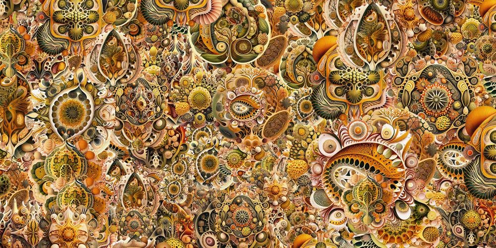 Yellow-brown abstract Haeckel wallpaper for a warm, artistic space.