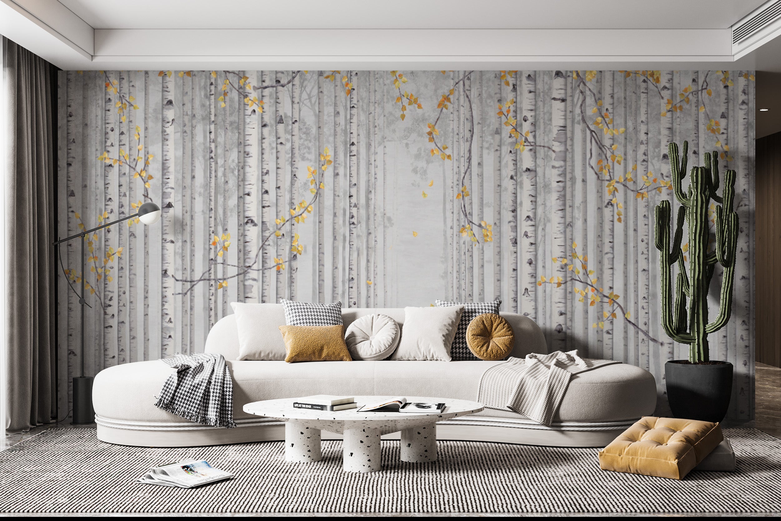It is introducing the yellow leaves and gray birch trees mural wallpaper – a captivating blend of nature's elegance ideal for any contemporary living room. This forest tree wallpaper showcases a mesmerizing dance of yellow leaves amidst graceful Gray birch trees, creating an ambience of serene beauty. If you're looking for a unique blend of yellow and grey color wallpaper that brings the charm of the outdoors in, this is a perfect choice. Elevate your space with this tree wallpaper, seamlessly blending natural aesthetics with modern design. Experience the tranquillity of nature every day with our Yellow Leaves and Gray Birch Trees Mural Wallpaper.