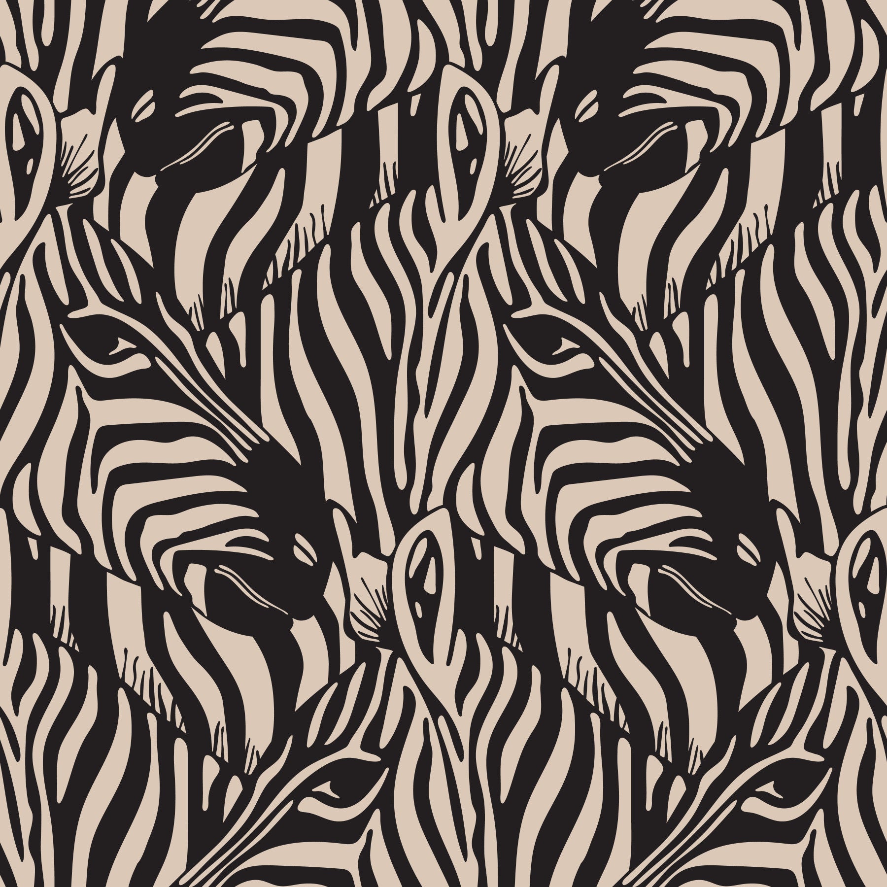 Immerse yourself in the untamed beauty of the African savanna with this captivating bold but warm "Zebra Herd" wallpaper that features a mesmerizing pattern of interlocking zebra heads. The striking contrast between bold black and warm beige creates a visually stunning display that manages to be both bold, graphic and wild, and elegantly neutral, at the same time! Perfect for adding a touch of natural sophistication to any space, this modern take on classic zebra stripe designs brings the spirit of the wild into your home. Whether you're a wildlife enthusiast or simply appreciate refined design, this wallpaper will transform your walls into a work of art. This pattern design is also available in Other Colourways too! Original wallpaper pattern design by Jackie Tahara of UnBlink Studio.