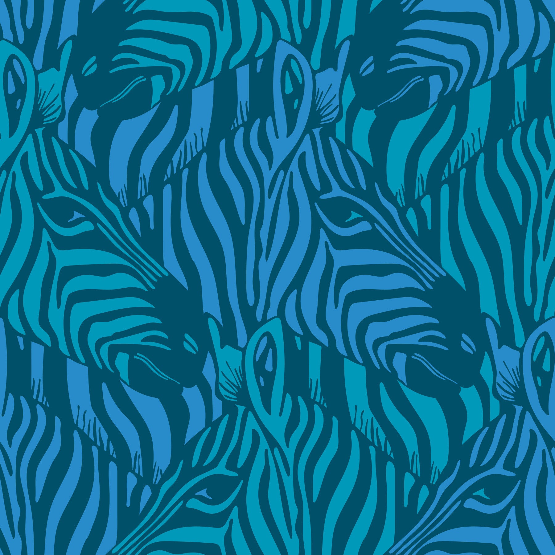 Immerse yourself in the untamed beauty of the African savanna with this captivating vibrant "Zebra Herd" wallpaper that features a mesmerizing pattern of interlocking zebra heads. The striking bright colours of Turquoise, Blue and Teal create a visually stunning display that manages to be bold, graphic and wild, and elegant at the same time! Perfect for adding a touch of natural sophistication to any space, this modern take on classic zebra stripe designs brings the spirit of the wild into your home. Whether you're a wildlife enthusiast or simply appreciate refined design, this wallpaper will transform your walls into a work of art. This pattern design is also available in Other Colourways too! Original wallpaper pattern design by Jackie Tahara of UnBlink Studio.