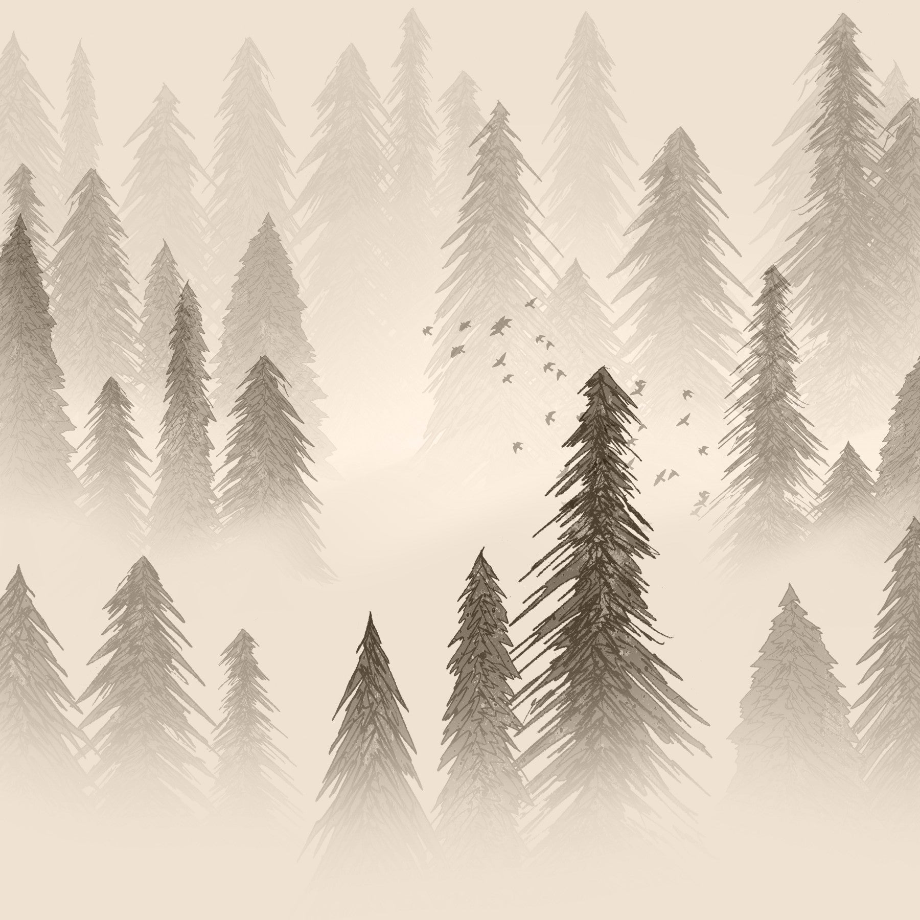 Rainforest Sepia Wallpaper – Pine Tree Illustration
