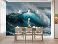 Traga o poder do oceano para o seu espaço com este papel de parede dinâmico. A imagem deslumbrante capta uma onda gigantesca no seu auge, exibindo a energia bruta e a beleza do mar. A paleta de cores varia de azuis e turquesas profundos a brancos brilhantes, oferecendo um impacto visual impressionante. Este papel de parede fica muito bem em salas de estar, corredores ou casas de banho, acrescentando um toque de drama e profundidade. As texturas detalhadas e a composição dinâmica dão vida à parede. Complementa interiores minimalistas, modernos ou com temática costeira, criando uma atmosfera de liberdade e aventura.