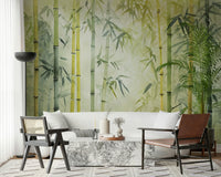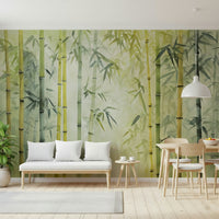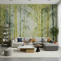 Infuzați-vă interiorul cu farmecul liniștit al unei păduri de bambus. Acest tapet pentru pereți surprinde esența naturii printr-o paletă de culori estompate de verde și galben, creând o atmosferă calmă în orice cameră. Designul prezintă tulpini și frunze delicate de bambus, evocând un sentiment de pace și seninătate. Se potrivește excepțional de bine în dormitoare, camere de zi sau chiar băi, adăugând o notă de eleganță a naturii spațiului dvs. Acest tapet sporește senzația de spațiu, fiind ideal pentru camere mai mici care au nevoie de o notă de aer liber.