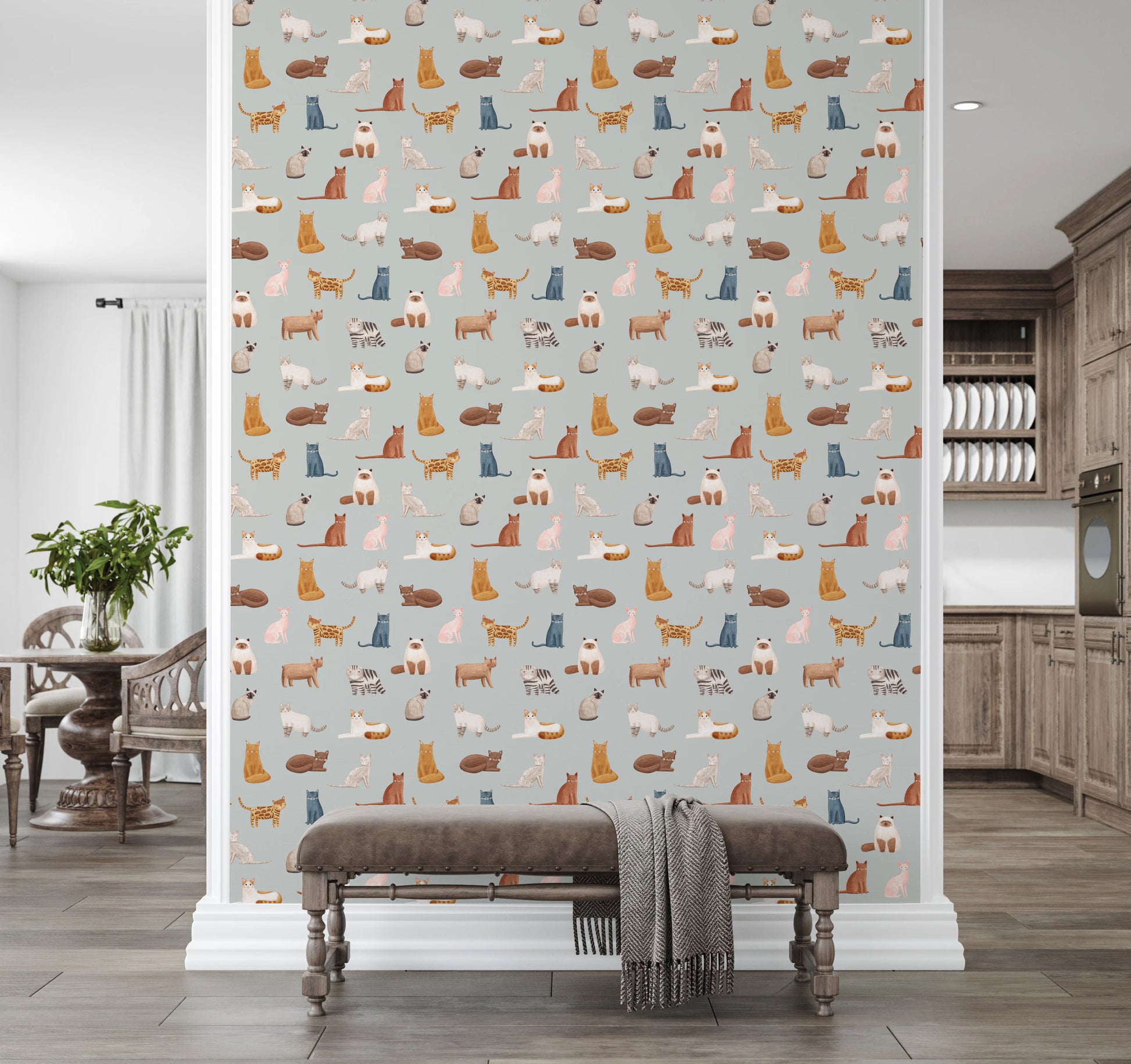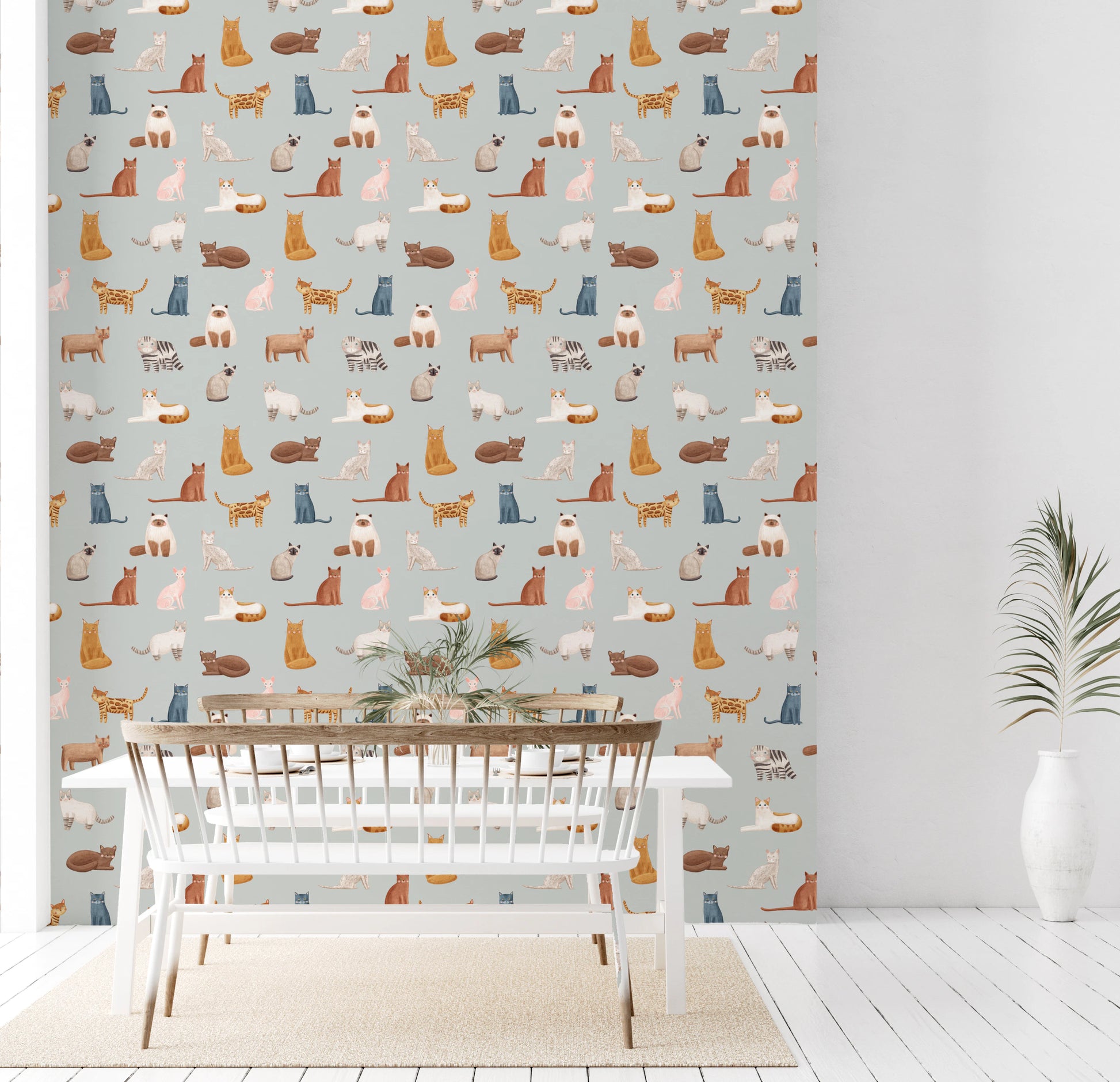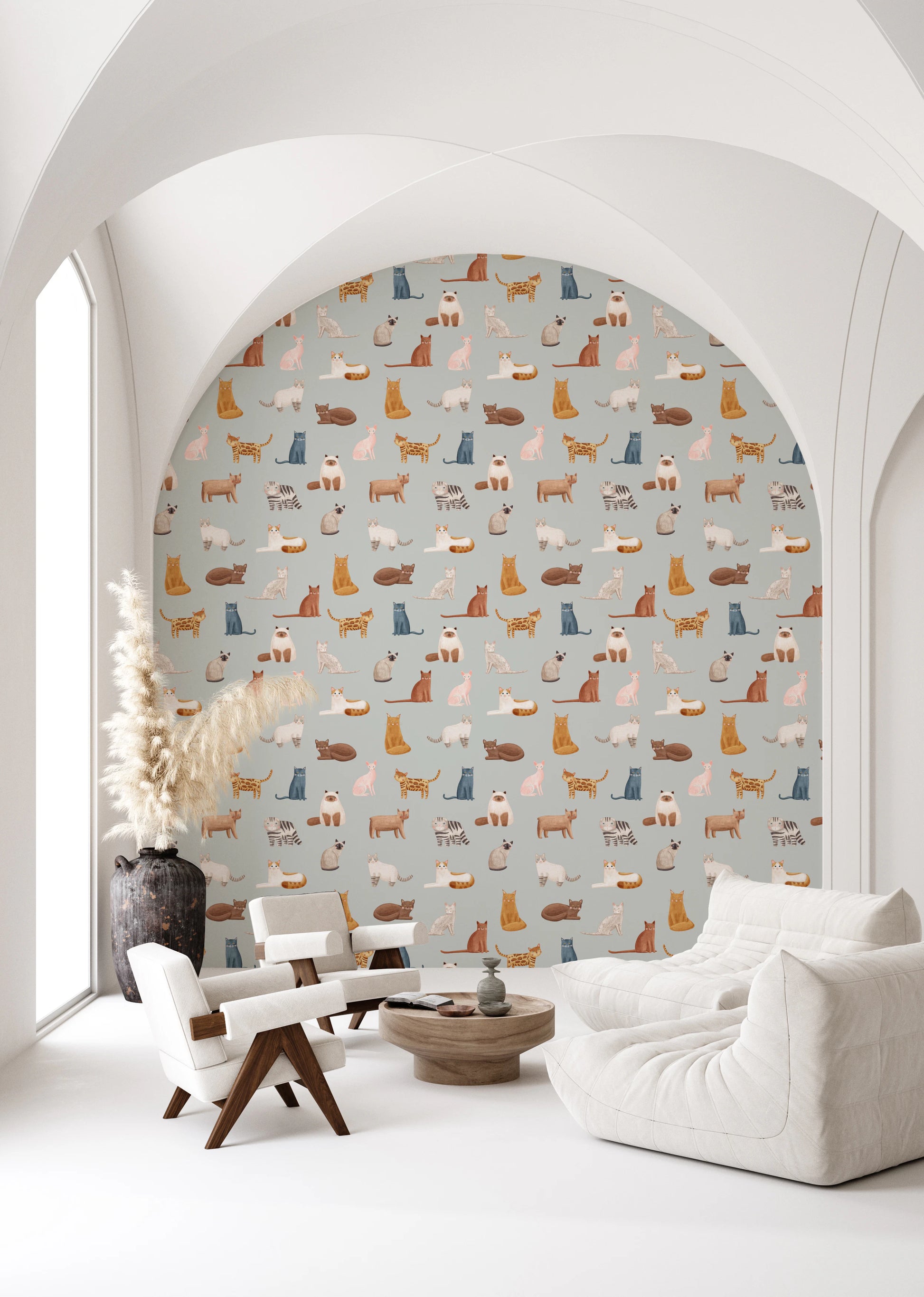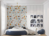 Aduceți o notă de farmec fantezist spațiului dvs. de locuit cu acest tapet jucăuș cu tematică pisicească pentru pereți. Designul prezintă o serie de pisici adorabile, ilustrate, în diverse ipostaze și culori, pe un fundal gri senin. Acest tapet oferă o modalitate încântătoare de a înviora orice cameră. Nuanțele delicate și stilul desenat manual creează o ambianță liniștitoare, dar captivantă. Este o alegere excelentă pentru camera copiilor, camera copiilor sau orice spațiu în care doriți să insuflați un sentiment de distracție și creativitate. Aceste pisici fermecătoare aduc un zâmbet și o senzație confortabilă, sporind estetica generală cu o notă de eleganță veselă.