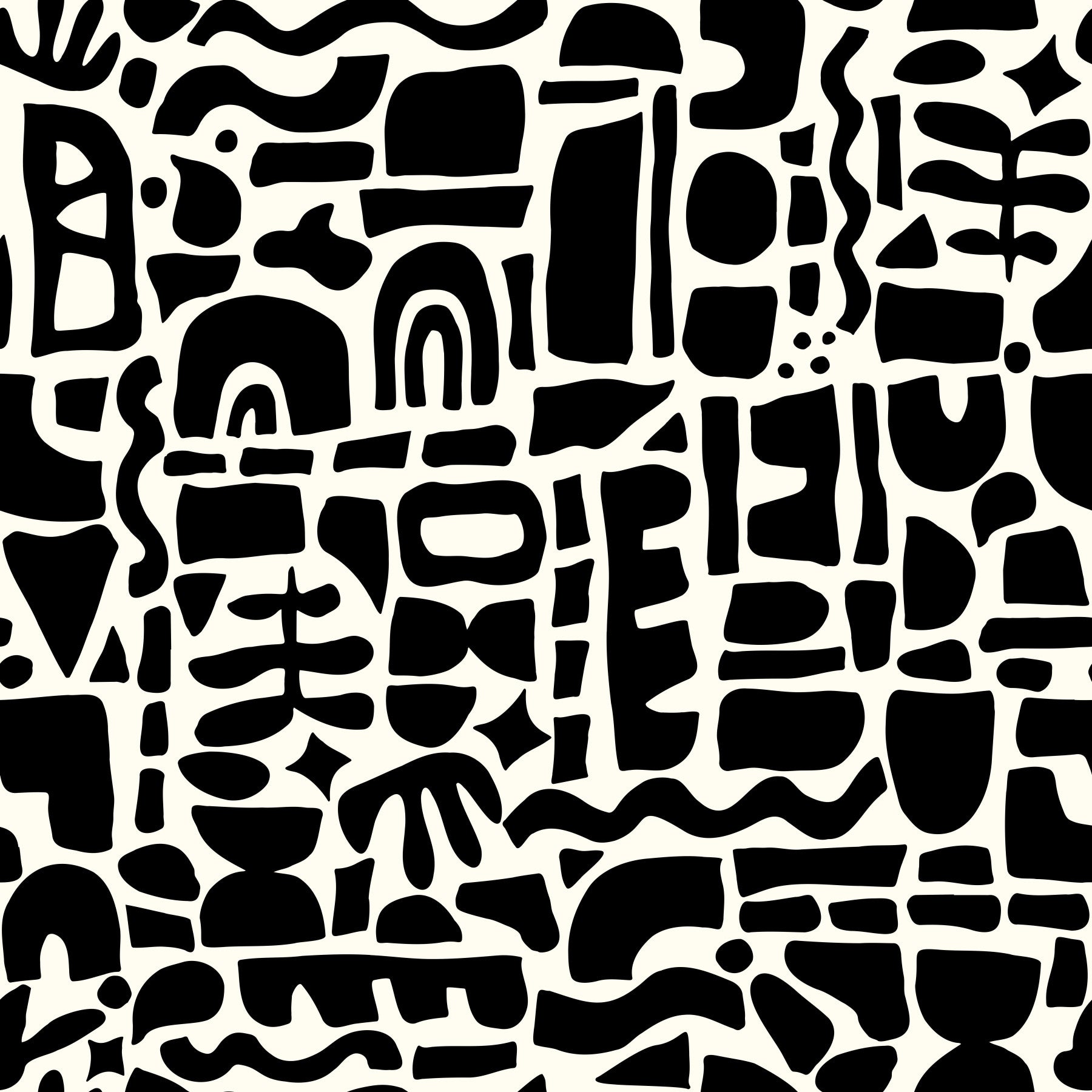 This stylish wallpaper features strong black shapes against a warm cream background. The striking contrast makes it a design that stands out. Consider this wallpaper for walls to create a feature wall in your dining room or brighten a hallway. Its simple, yet bold design works well with various interior styles. From classic to contemporary, this pattern gives a modern twist to any space. The neutral palette will allow you to experiment with colors in furniture and accessories.