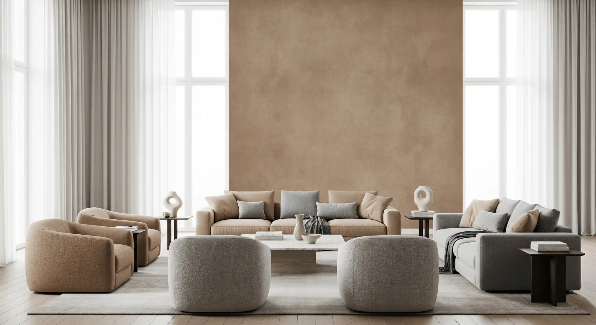 Dirty Paper - Blush aduce o atmosferă caldă și discretă, cu o textură de hârtie ușor uzată. Tonurile amestecate de roz pal, bej și taupe nisipos creează un model delicat, peticit, care transmite o senzație de calm și modernitate, asemănător tencuielii vechi sau papetăriei vintage. Această tapetă funcționează minunat ca un mural subtil pe pereți în dormitoare, camere pentru copii, holuri sau un birou confortabil acasă și se potrivește bine cu stiluri de design interior minimaliste, scandinave sau rustice, atunci când dorești textură fără un imprimeu încărcat.