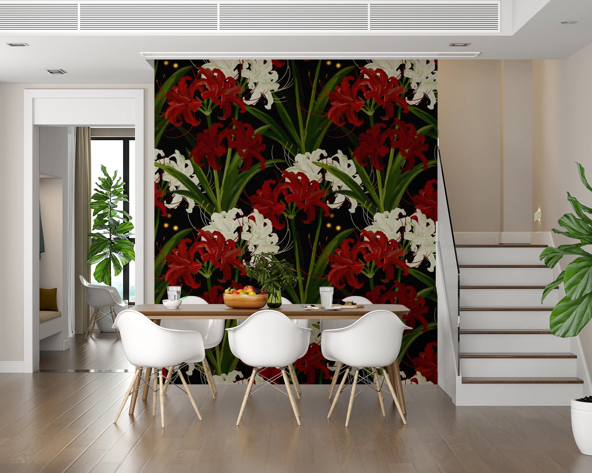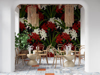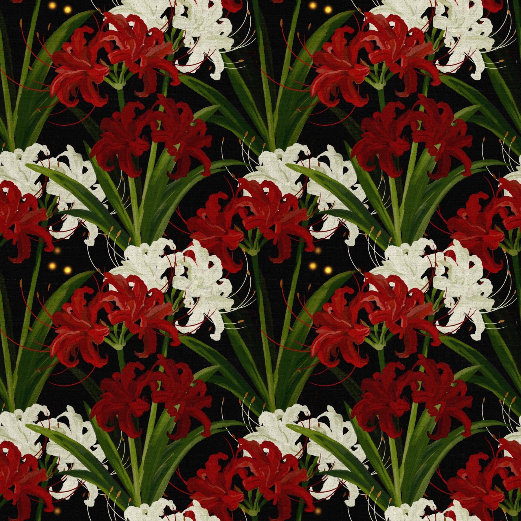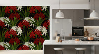 Fototapet Lycoris Noir Romantism de la miezul nopții, flori albe și roșii înflorind