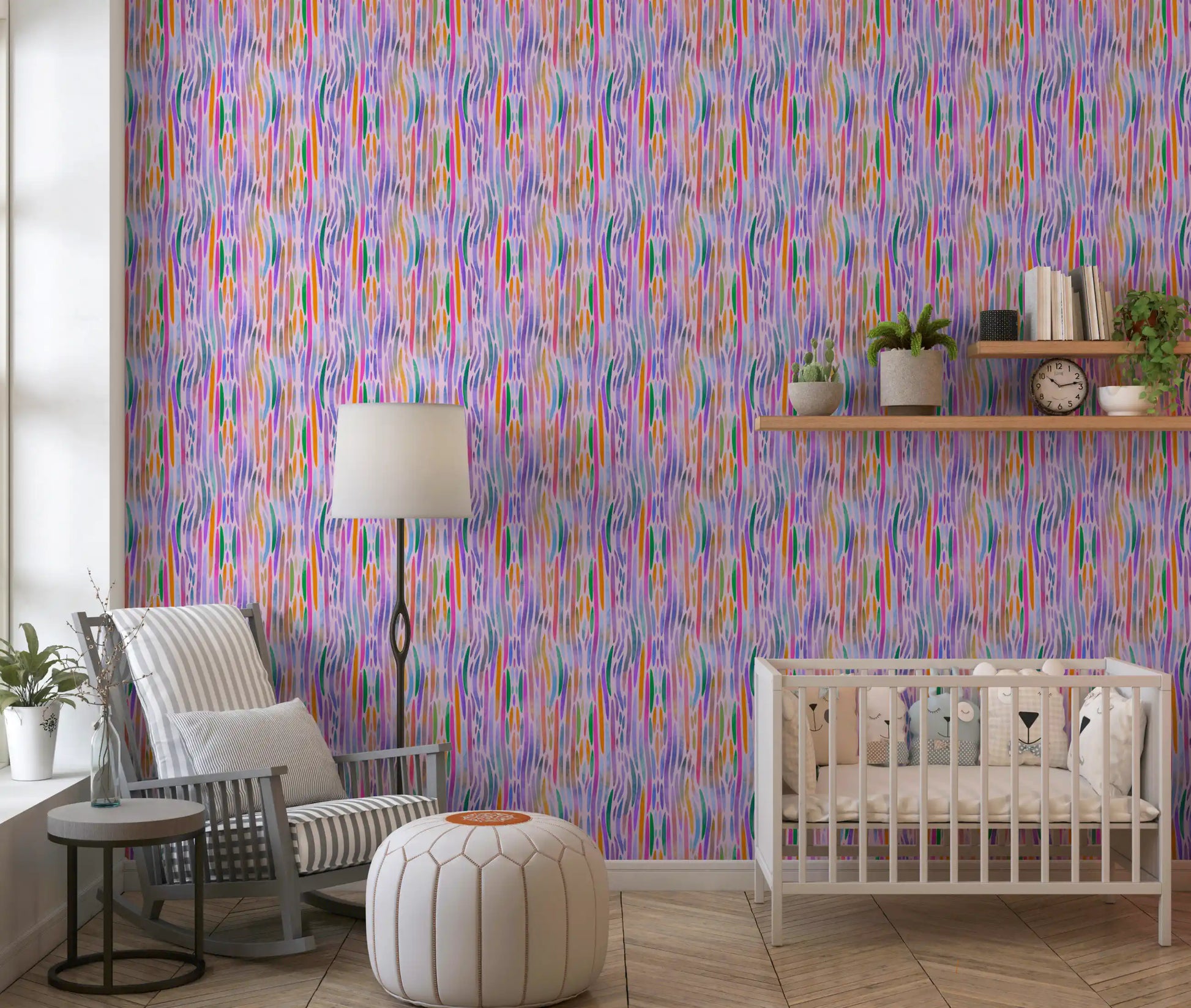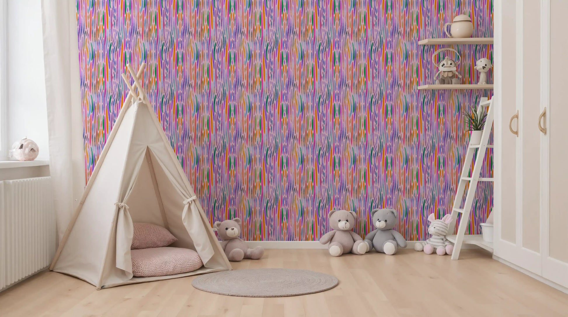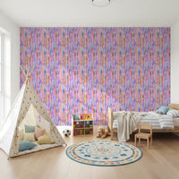 Acest tapet captivant pentru pereți prezintă un design abstract cu forme alungite, organice. O paletă vie de rozuri radiante, portocalii vii, verde liniștit și mov energic creează un flux vizual armonios. Fiecare formă are o textură translucidă, asemănătoare acuarelei, adăugând profunzime și o notă picturală suprafeței. Estetica sa modernă, inspirată de artă, ridică orice spațiu interior, insuflând energie veselă. Instalează acest model dinamic în living, camera copilului sau studio creativ pentru a adăuga un aer artistic și un sentiment de fantezie. Se potrivește frumos cu mobilierul contemporan și decorul minimalist, făcând orice încăpere să pară mai vibrantă și primitoare.