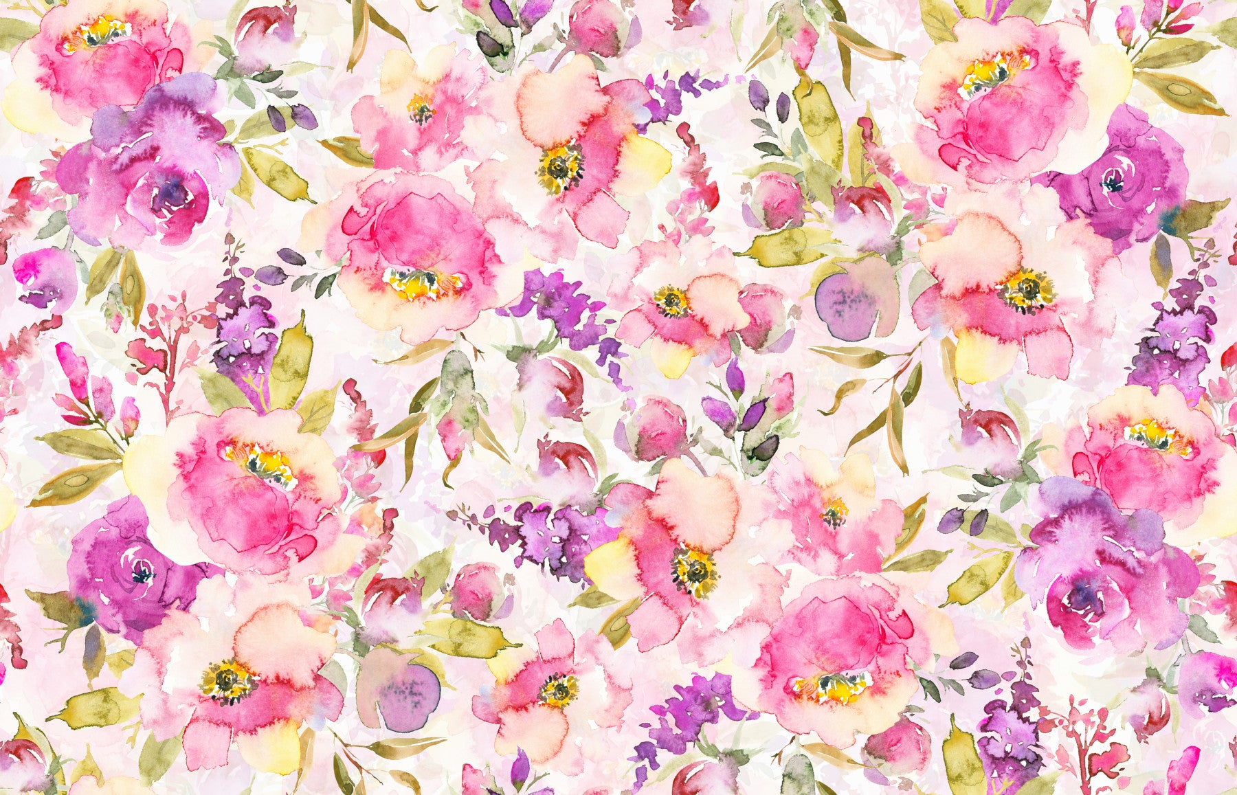 Pink & Purple Watercolor Florals wallpaper for walls.
