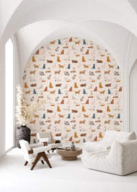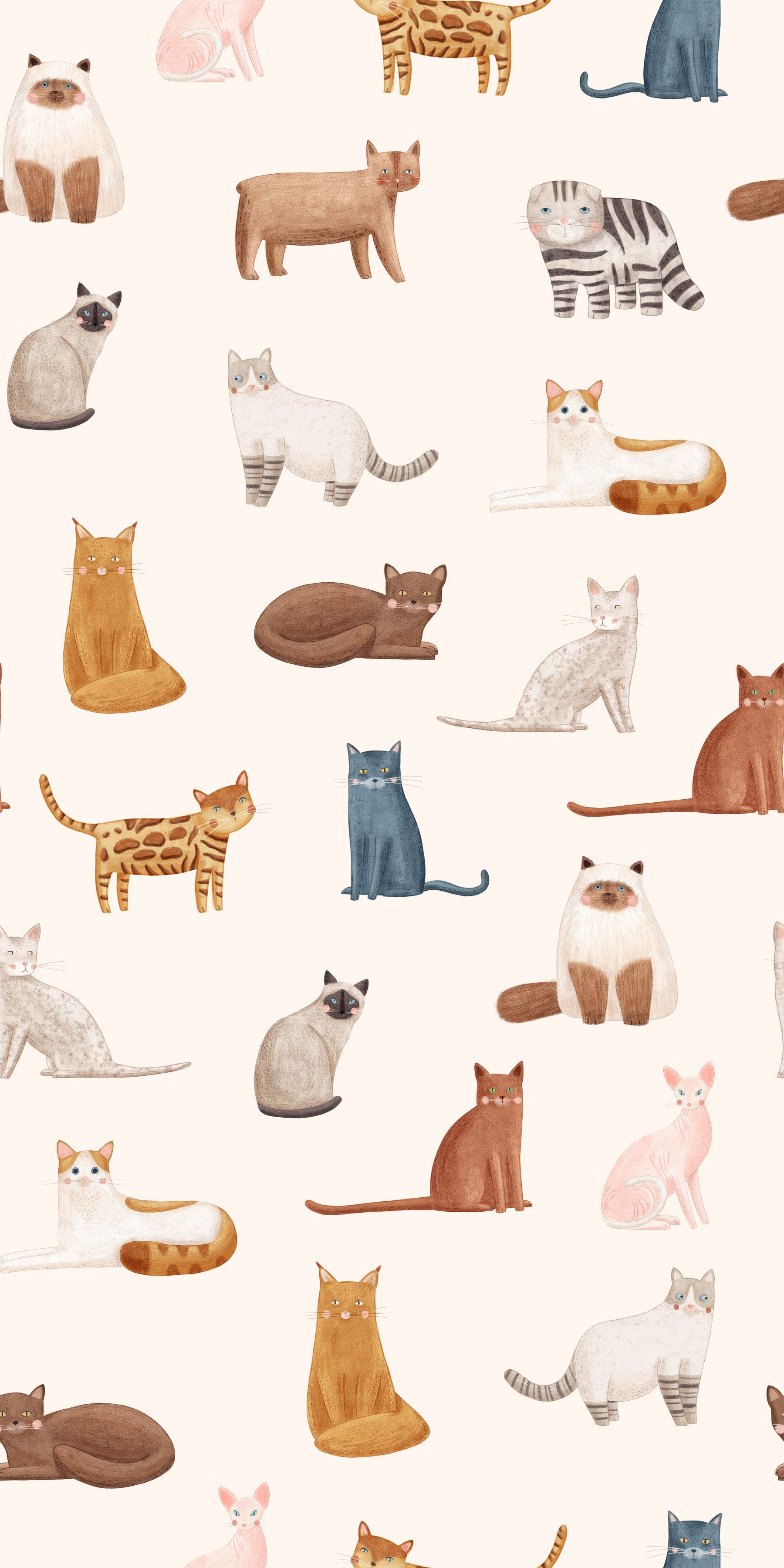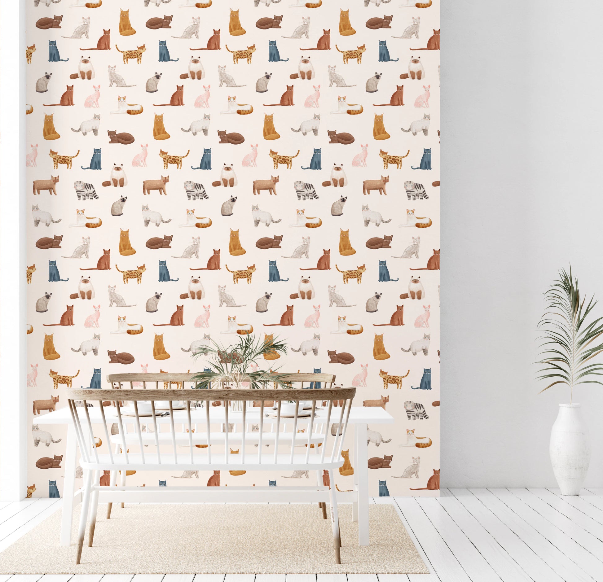Adaugă o notă de fantezie spațiului tău de locuit cu acest tapet încântător cu tematică pisicească, pentru pereți. Designul prezintă o serie de pisici fermecătoare, desenate manual, în diverse ipostaze și culori. Fundalul său neutru, moale, creează o atmosferă calmă și primitoare. Ideal pentru camera copiilor, camera copiilor sau orice spațiu în care dorești să adaugi o notă jucăușă, dar sofisticată. Acest model aduce o notă veselă și completează interioarele moderne, minimaliste și chiar de inspirație vintage. Măiestria delicată îți îmbogățește camera cu un design adorabil și elegant.